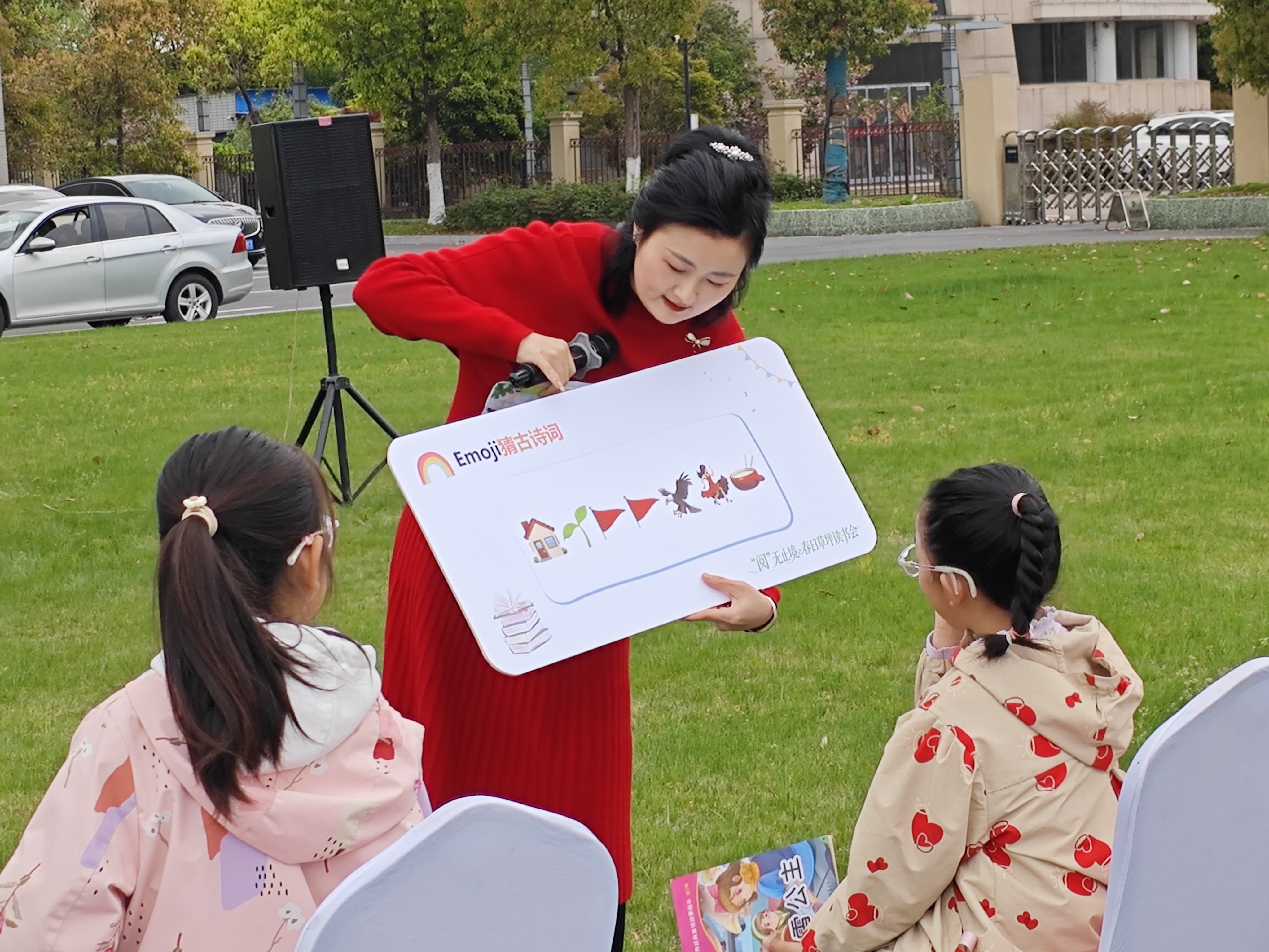 活动现场,创意十足的“emoji猜古诗”环节迅速点燃全场热情。孩子们化身“诗词小达人”,凭借扎实的诗词积累,快速破解表情符号构建的诗词谜题。抢答声此起彼伏,在轻松愉快的互动氛围中,大家重温了《登鹳雀楼》《梅花》等经典名篇,在欢声笑语中感受中华传统文化的独特魅力。