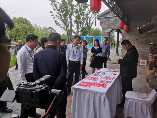 在开幕式上,冈西非遗剪纸传承人受到主办方的诚挚邀约,进行了现场剪纸展示,《喜获丰收》《鱼水情深》《螃蟹》等系列栩栩如生的涉农作品获得各级领导和与会人员的一致好评,大家现场体验了非遗剪纸文化,展示了冈西剪纸的魅力。