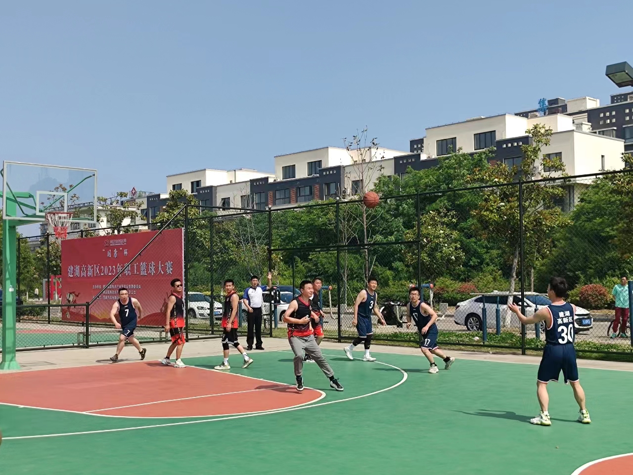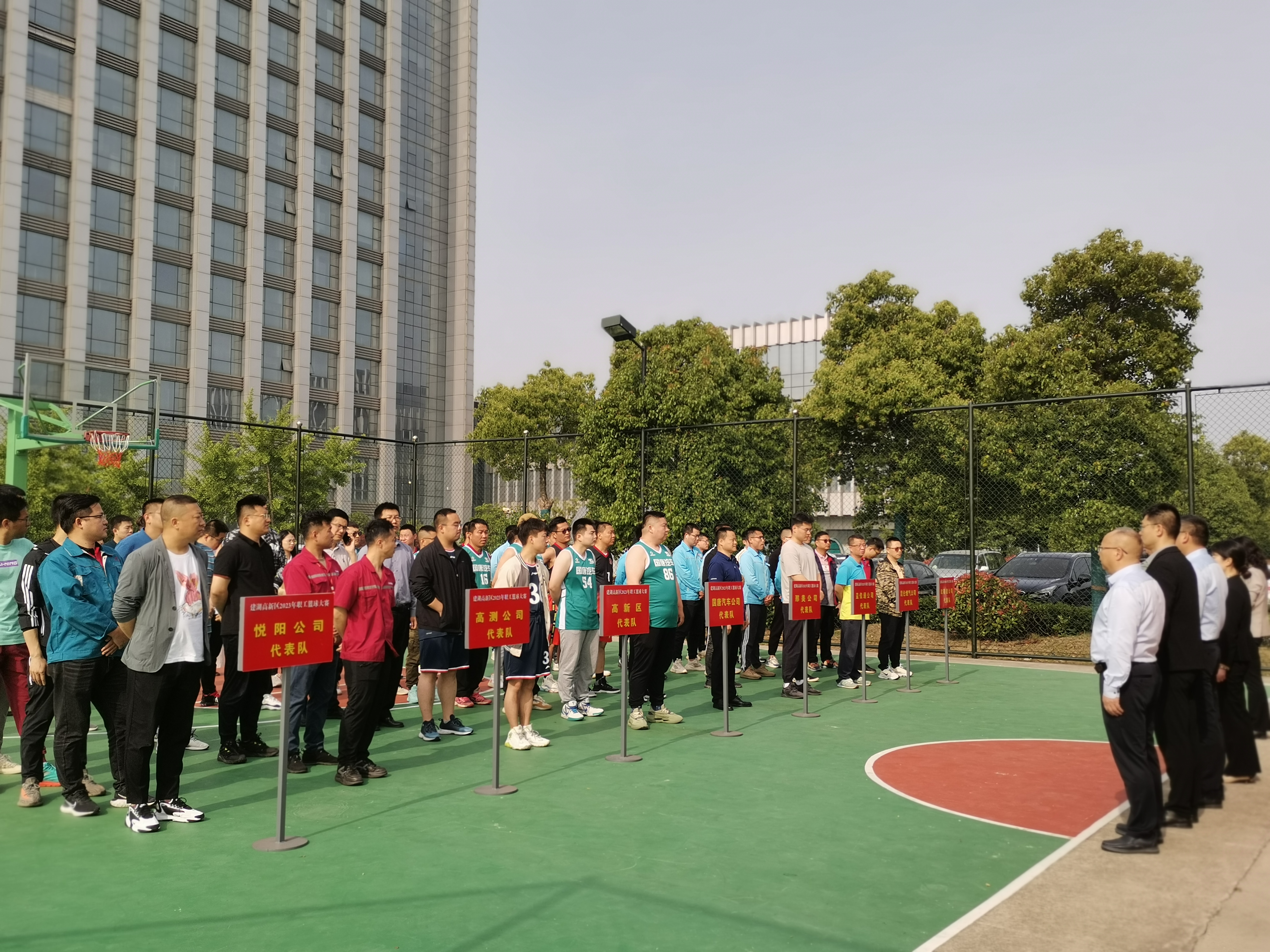 近日,建湖高新区2023年第一届、为期一周的企业职工篮球联谊赛在科创大厦北侧篮球场开赛,本次赛事由建湖高新区管委会、工会、国唐汽车有限公司共同举办。