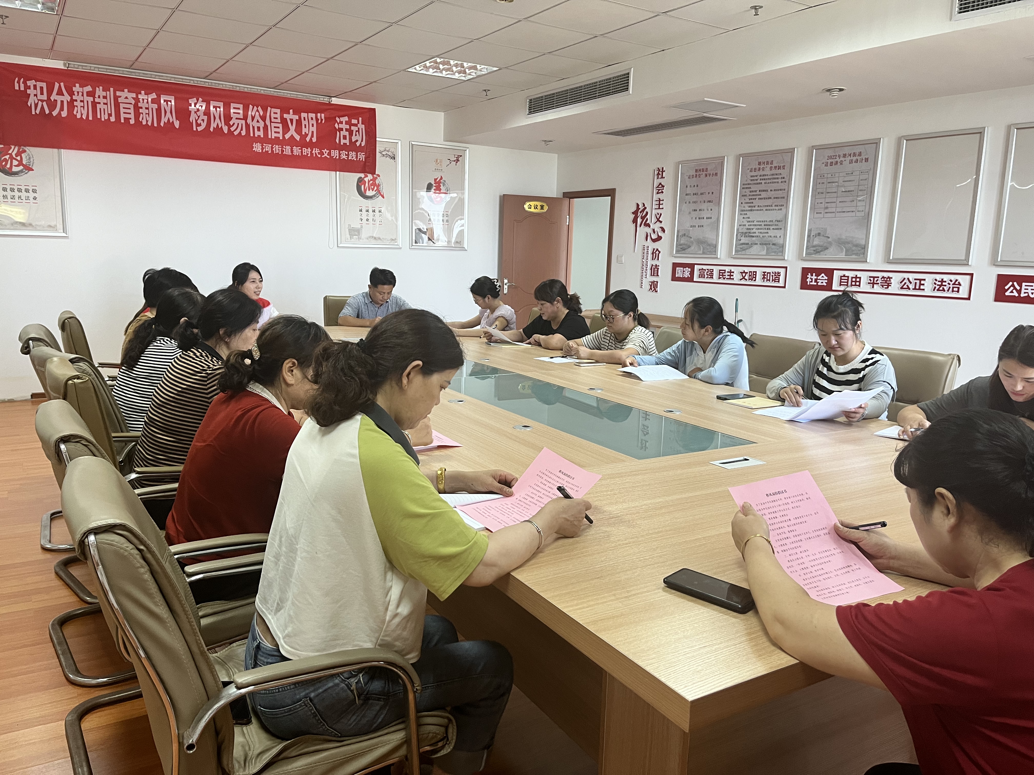 日前,建湖高新区(塘河街道)组织辖区居民,在塘河街道新时代文明实践所开展“积分新制育新风 移风易俗倡文明”活动。活动中,宣读了《关于移风易俗积分制奖励办法》,学习了运用“积分制”助推移风易俗的优秀实例,活动过程简单明了、氛围热烈。