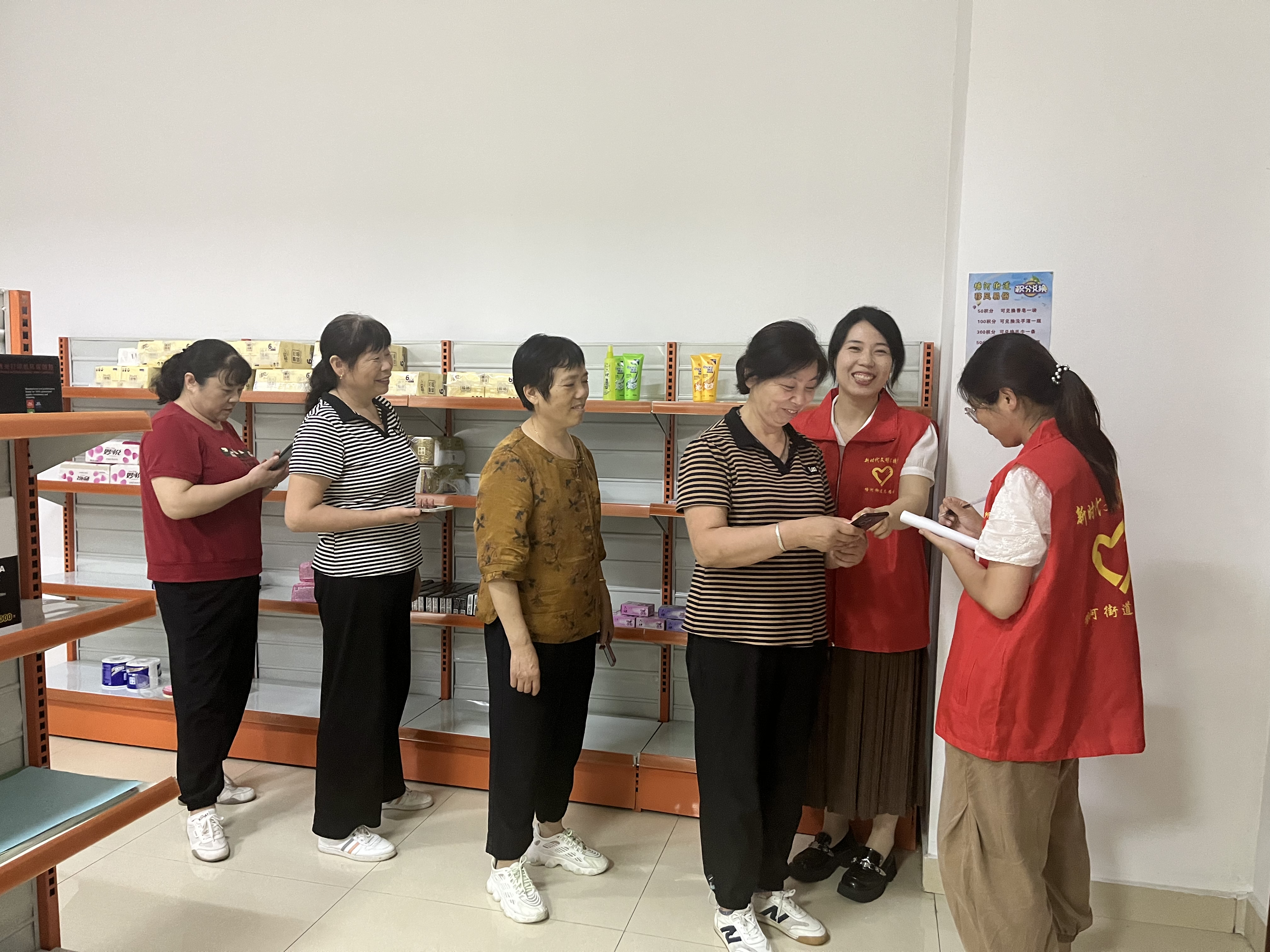 在“积分小超市”里,笔者看到货架上整齐摆放着标注分值的各类生活用品。居民通过参加街道公益活动等,达到考核标准后获取积分,凭积分就可以在这里免费兑换到商品。