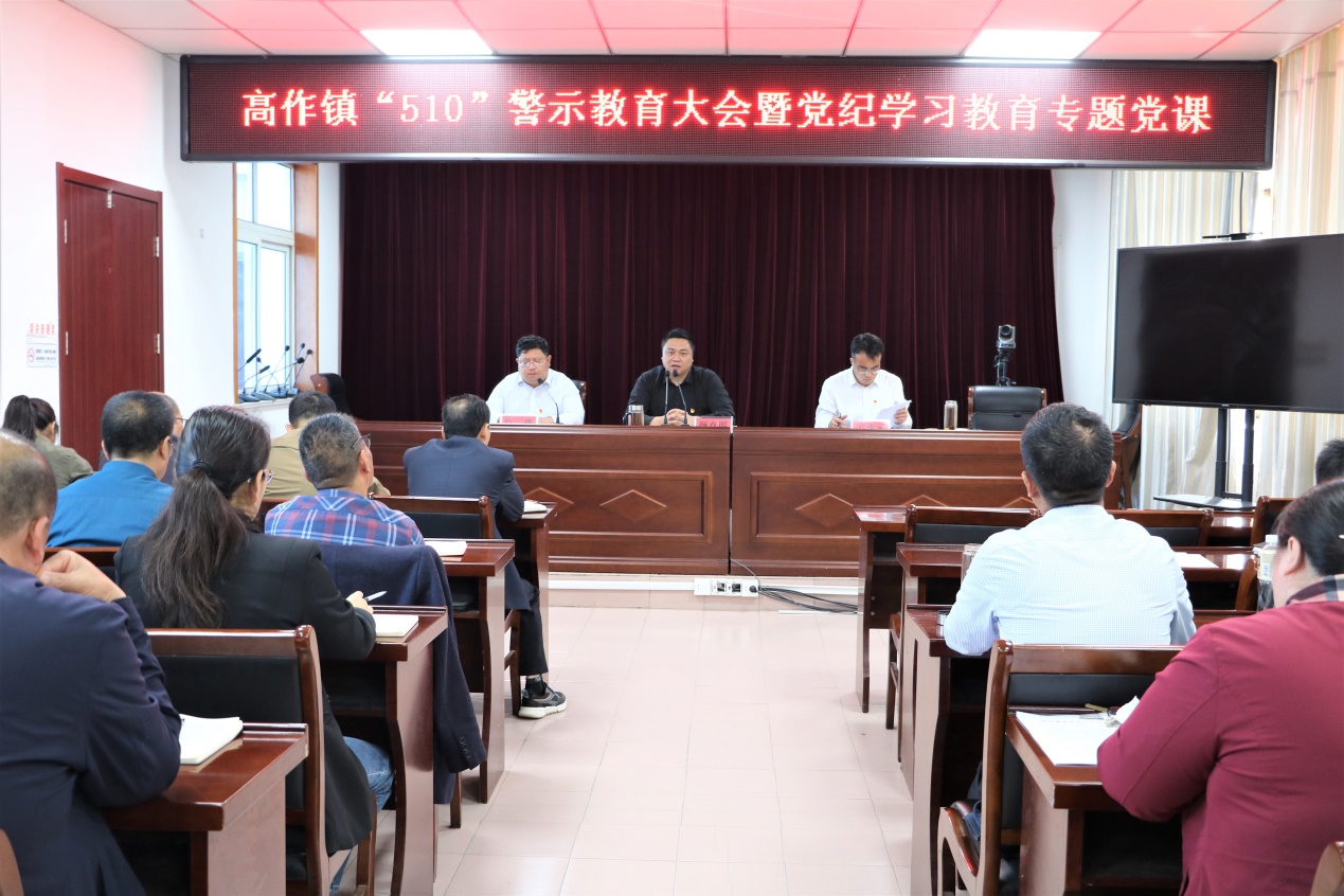 为认真落实党委全面从严治党主体责任,切实增强全镇党员干部纪律规矩意识,5月13日,建湖县高作镇组织领导班子,镇直办单位主要负责人和各村居书记、主任、会计参加“510”警示教育大会暨党纪学习教育专题党课,通过以案释纪、以案明纪,教育引领全镇党员干部引以为戒、警钟长鸣,筑牢拒腐防变思想防线。