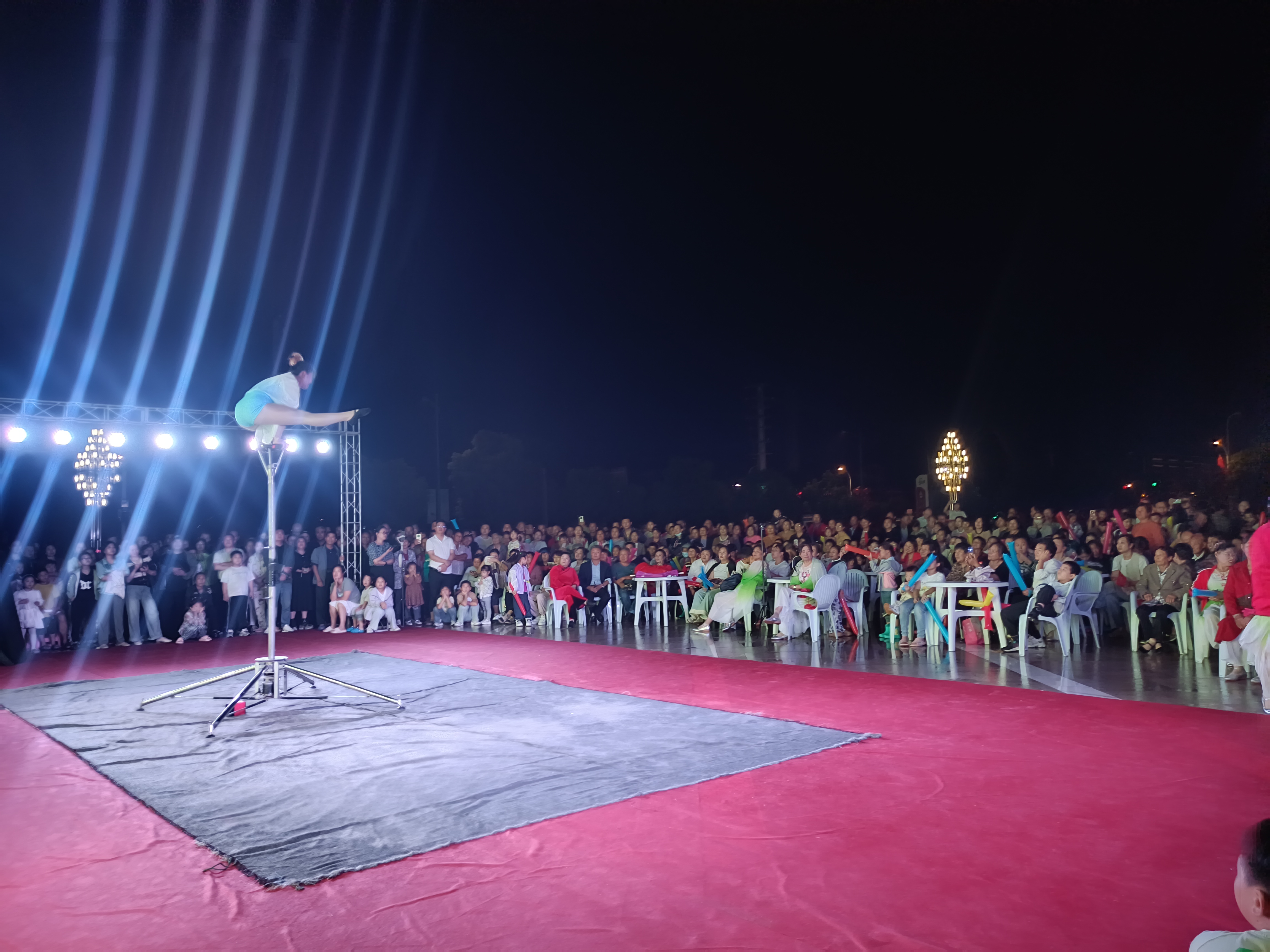 悠扬的音乐声响起,活力四射的广场舞表演正式开始。舞蹈队员身穿特色服装,跟着欢快的节奏跳起了动感的舞步,表达对节日的祝福。倒立、空翻、滚翻……杂技演员以其高超的技艺,配合的默契,完成了一组组高难度动作,让现场群众惊叹不已。随后歌曲、舞蹈等节目轮番登场,表达对祖国繁荣昌盛的美好祝愿。围绕庆祝主题,本次活动还设置有奖答题环节,人们纷纷以各种形式参与其中,现场掌声连连,气氛热烈,其乐融融。
