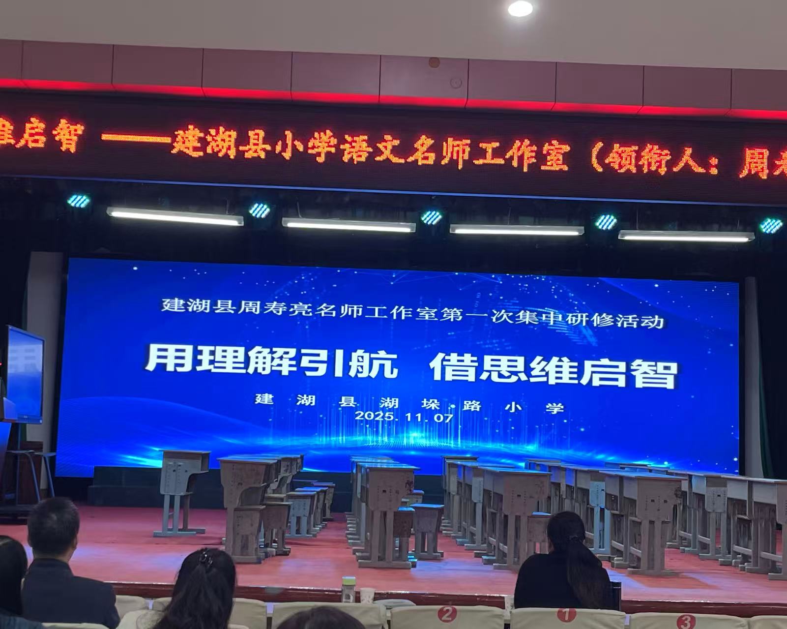 为进一步深化小学语文课堂教学改革,发挥名师工作室的辐射引领作用,11月7日,建湖县小学语文名师工作室(领衔人:周寿亮)首次集中研修活动在湖垛路小学成功举行。本次活动以“用理解引航,借思维启智”为主题,聚焦“理解性学习”与“思维型教学”的课堂实践,旨在破解“重知识传授、轻思维培养”的教学痛点,为构建以学生为中心的高效课堂探索路径。工作室全体成员及湖垛路小学全体语文教师共同参与了此次研修。