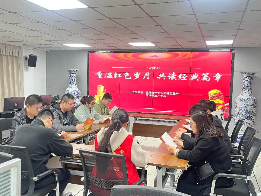 图为该镇机关年轻干部阅读红色经典,自觉接受革命传统教育和爱国主义教育。