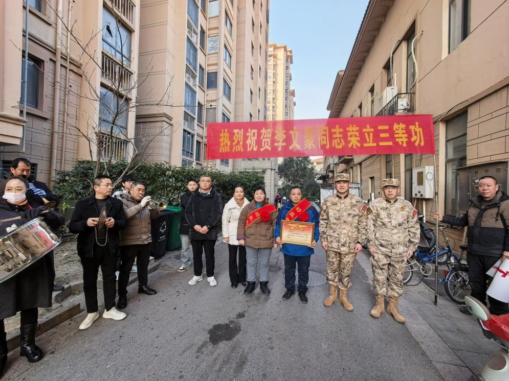 李文豪的父亲李正江满怀欣喜地说道:“孩子能够在部队立下功劳,我们全家人都深感自豪,同时也由衷感谢党和政府长期以来给予的关怀。我们必定会鼓励他在部队继续奋勇拼搏,不辜负家乡父老的殷切期望,争取再创佳绩、再立新功。”军属们难掩内心的激动,言语之中尽是骄傲与对孩子未来的期许。周围听闻喜讯赶来的乡亲们纷纷上前,热情地表达祝贺之意,现场掌声接连不断,温暖的氛围弥漫开来,充分展现出“一人当兵、全家光荣,一人立功、全镇骄傲”的浓厚氛围。
