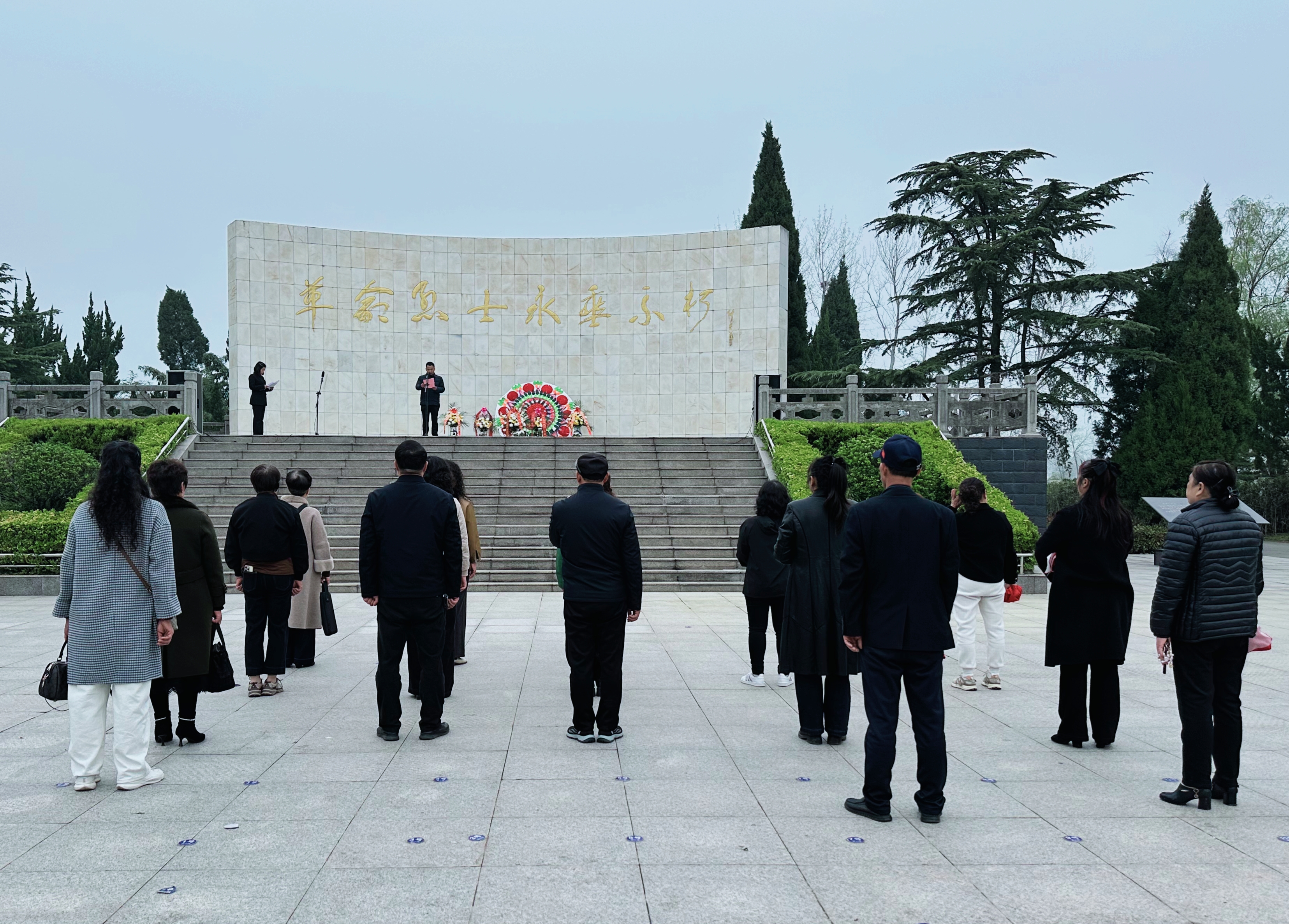 巍峨的烈士纪念碑前,全体人员手捧一束束洁白的菊花整齐排列,在敬献花篮后,大家垂首肃立默哀,并依次上前,轻轻将鲜花摆放在纪念碑基座下。