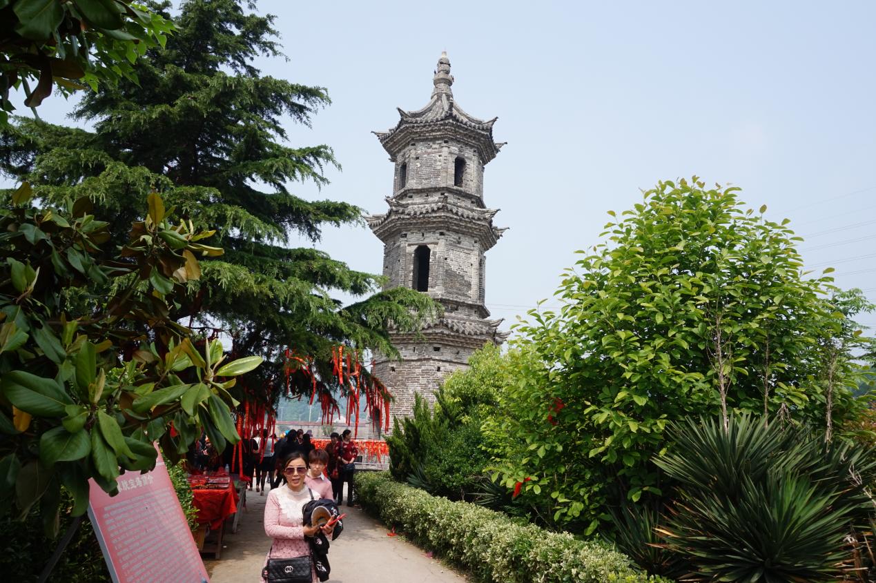 图为该镇绿荫环抱的千年古塔朦胧塔。