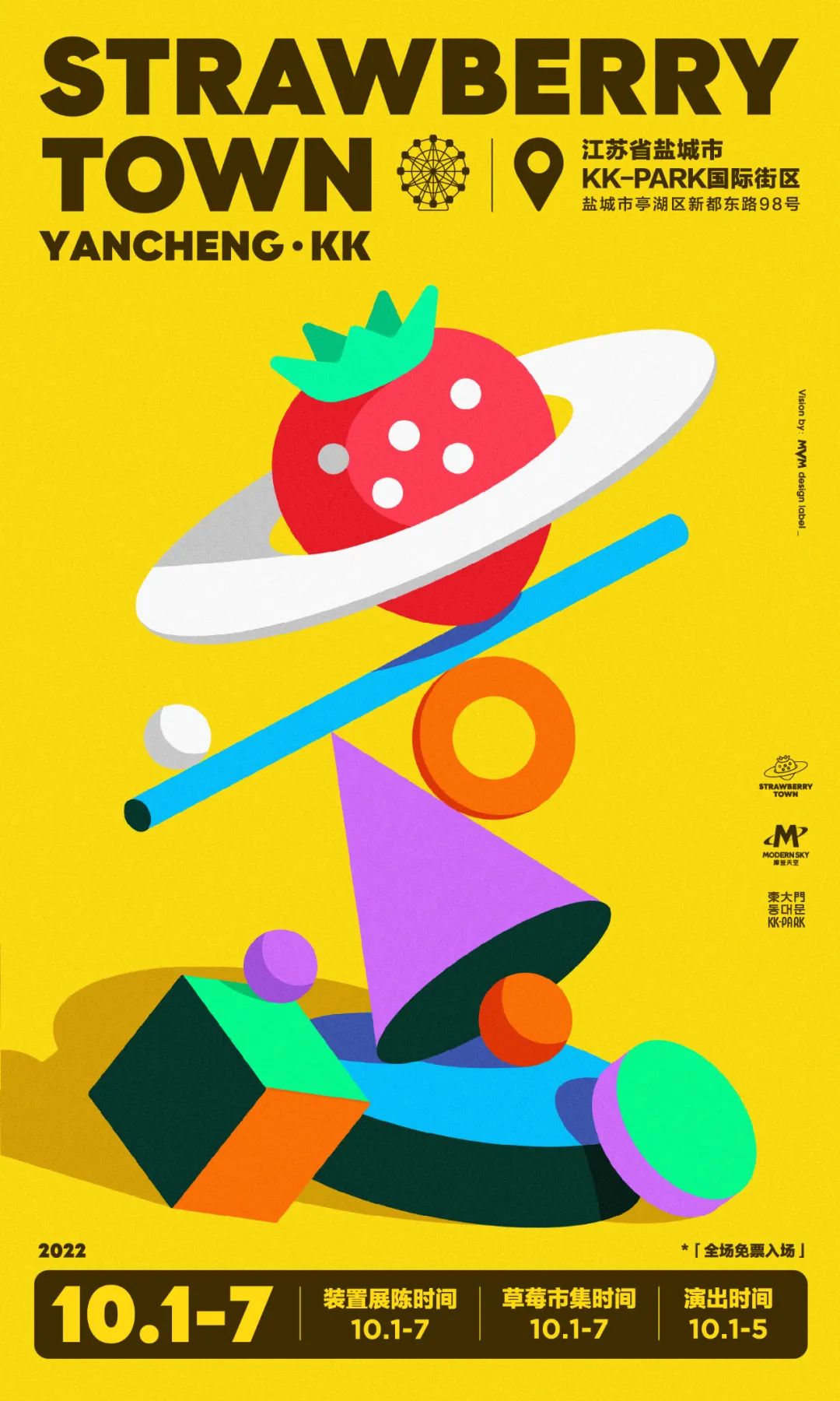 此次落地盐城KK-PARK,草莓TOWN的内容涵盖音乐演出、市集、装置三大板块,让你的假期,每一天精彩不重样!