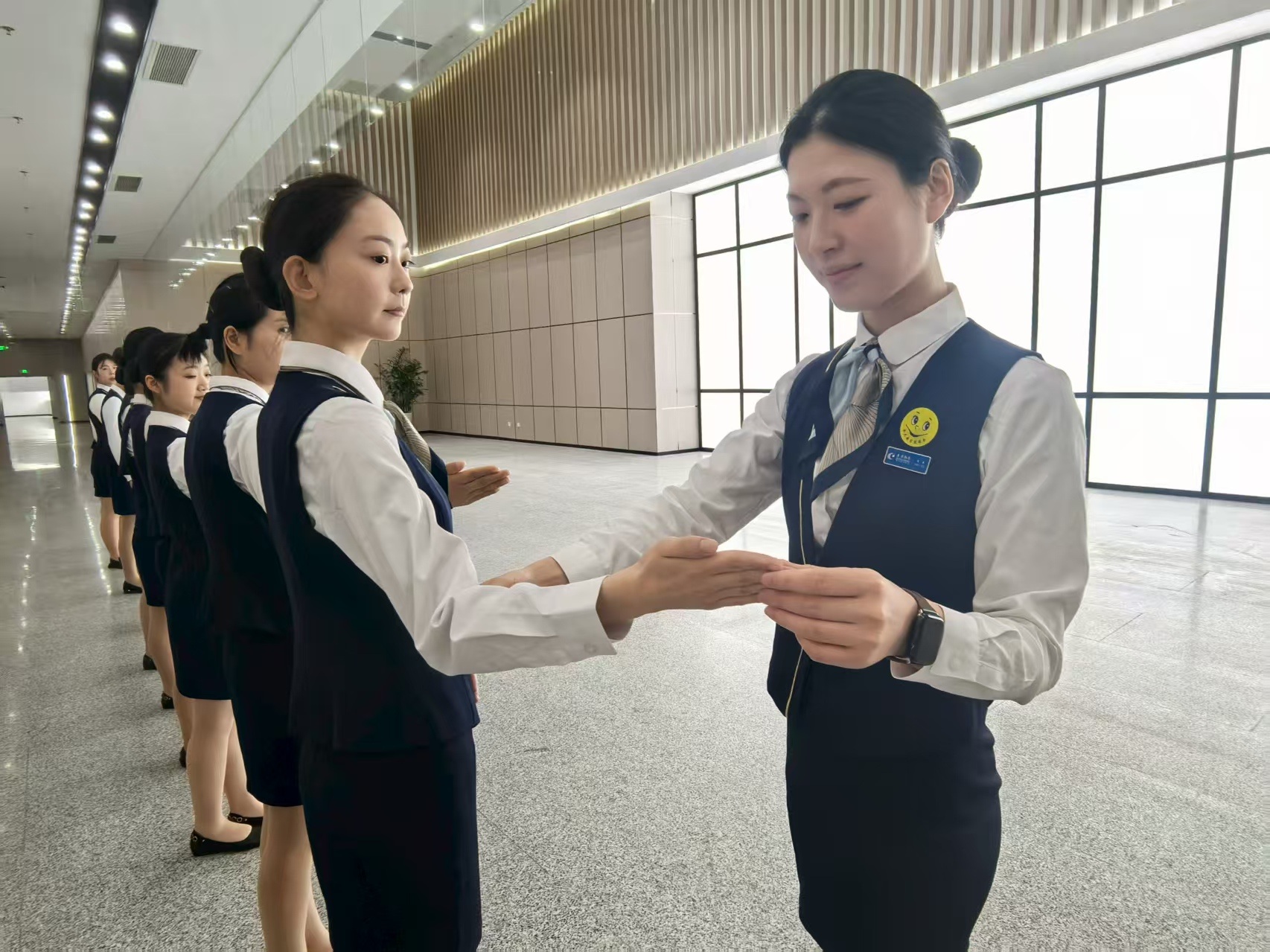 东方物业公司逾百人的服务团队化身场馆“守护者”,用细致服务传递温度。保洁人员对地砖缝隙都一丝不苟地清理,安保人员24小时不间断巡逻,工程技术人员紧盯各项设备运行数据。从环境保洁、会场秩序维护到物品规范摆放,每一个细节都力求完美。论坛期间,会务服务尤其令人印象深刻。茶水服务环节,服务人员动作轻盈优雅、整齐划一,全程静谧有序,展现了极高的职业素养。在开幕式后的会场转换中,服务团队更是高效协作,仅用10分钟便完成了主会场大量沙发、茶几的快速撤离与场地整理,其专业与高效赢得了各方称赞。