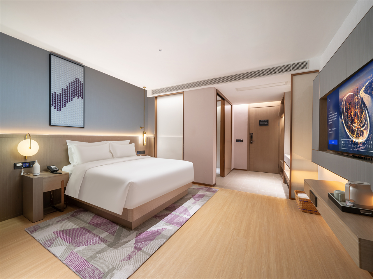 自2024年11月开业以来,酒店始终将品质建设贯穿于每一个运营细节。客房设计延续品牌标志性的“麗枫紫”主色调,融入薰衣草主题元素,营造出精致松弛的居停氛围。酒店共拥有72间客房,房内配备智能房控系统,并与国际高端寝具品牌合作定制优质床垫与纯棉床品,全面优化睡眠体验。特别设置的“纯净客房”还配备了PM2.5检测空气净化器、超声波除螨仪及一次性防护床品,悉心守护宾客健康。