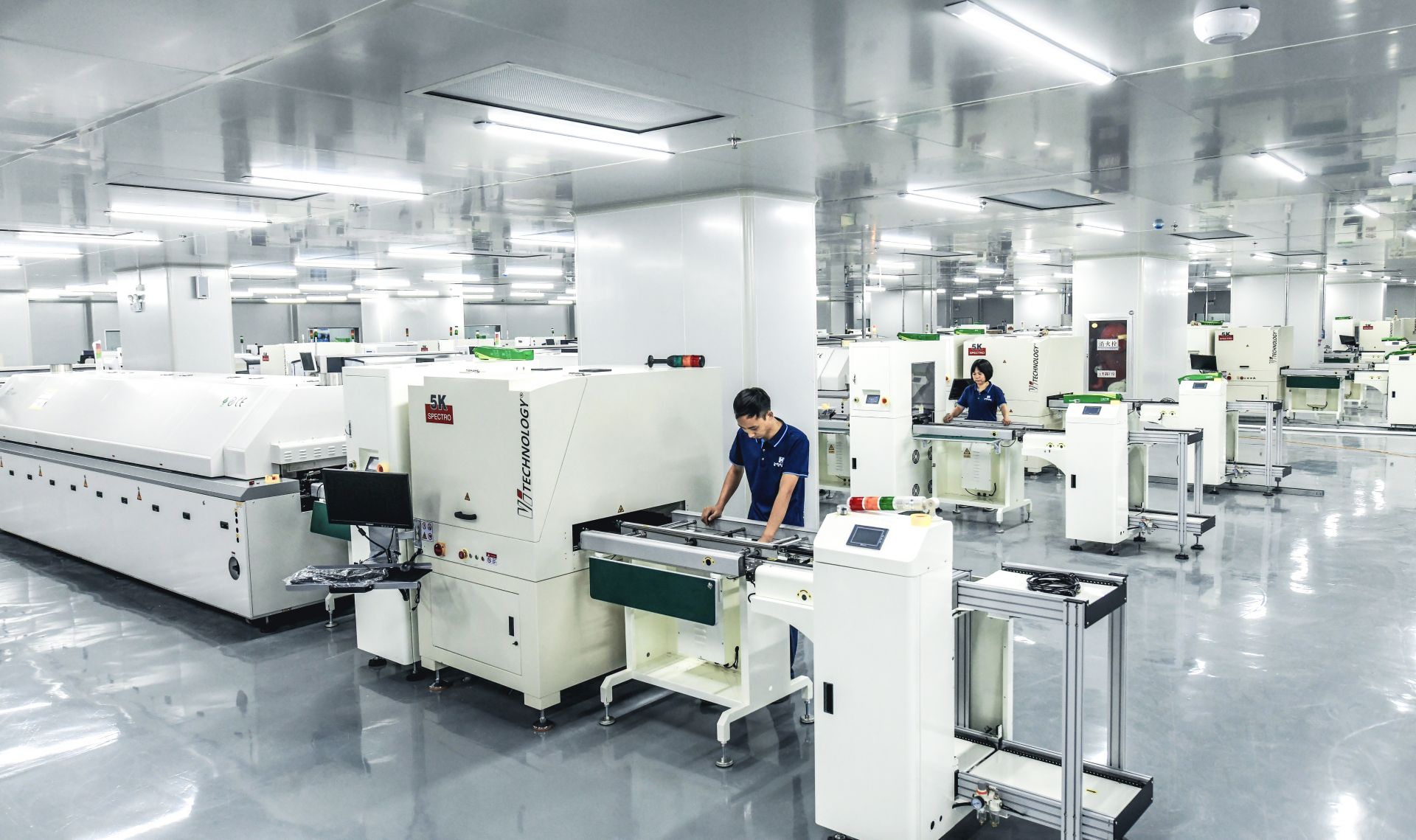 自主研发全行业首台自动供料、装配机器人,装配精度达到0.1mm;芯片直接贴装技术免除绑定、焊接等工艺流程;采用COB工艺解决LED显示屏向微间距发展的瓶颈......今年落户射阳电子信息产业园的创维商显LED屏项目科技感十足。该项目是创维唯一的LED直显屏生产基地,全国LED屏行业示范智能工厂,拥有华东地区首条可量产全智能COB生产线。该项目由落户射阳的汇宇朗景和三彩光电公司牵线搭桥入驻。企业负责人林必建说:“今年3月份到射阳考察,这里有LED生产需要的灯珠、线路板、箱体、结构件等配套企业,再由创维集团顾问单位中国光学光电子协会调研认证,综合各方面比较最终确定在射阳投资。”