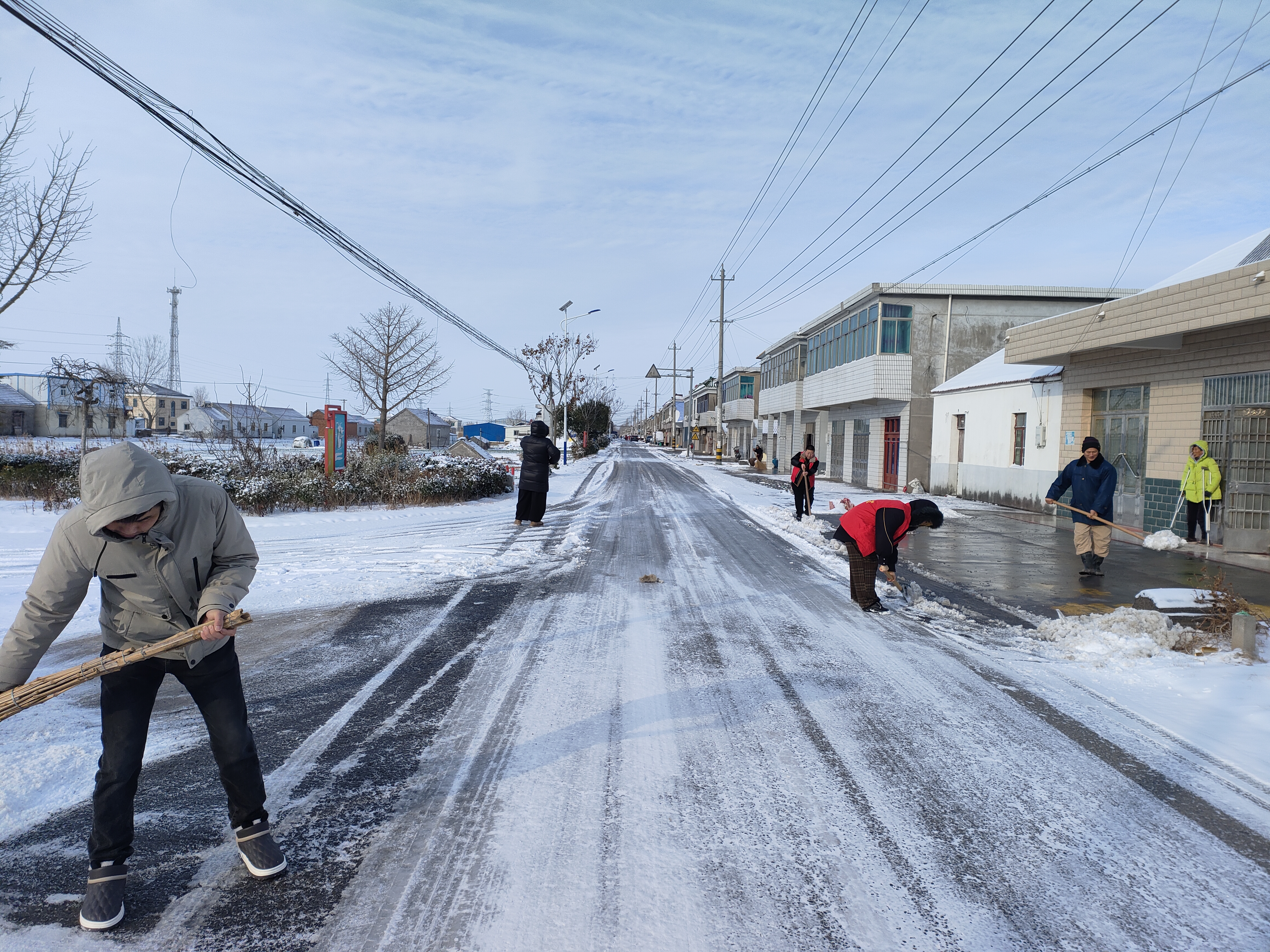 各村居的抗雪行动同样迅速及时。在兴圩村、新东村、兴盛村等村庄,党员干部与群众自发组成清雪突击队,大家自带工具,对村内主干道、田间生产路及便民桥进行全面清理。退休党员、返乡青年、个体工商户纷纷加入,铁锹与地面碰撞的“铿锵声”、邻里间的互助吆喝声,奏响了冬日里的暖心乐章。针对易滑陡坡、背阴路段,各村还设置了“小心地滑”警示标识,安排专人巡查值守,确保无安全事故发生。