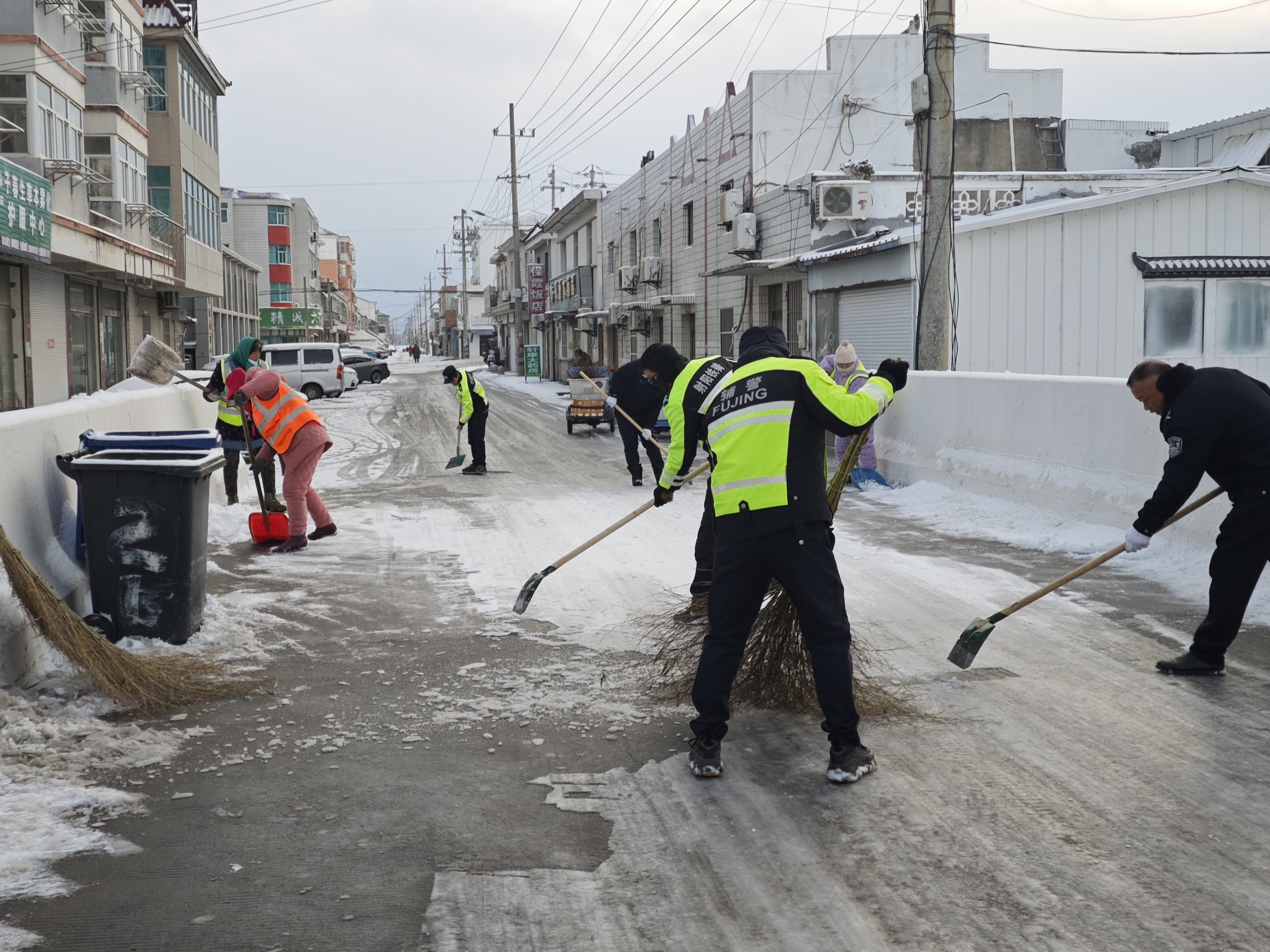 临海镇双洋社区迅速调运铲车,对辖区主干道及陡坡路段进行机械化作业;同胜社区党员志愿者自发组建“暖心服务队”,逐一走访辖区独居老人,为他们清扫家门口的积雪,开辟安全通道。东兴、五岸、团洼等社区也各司其职,组织志愿者分段包干、合力清扫路面积雪。