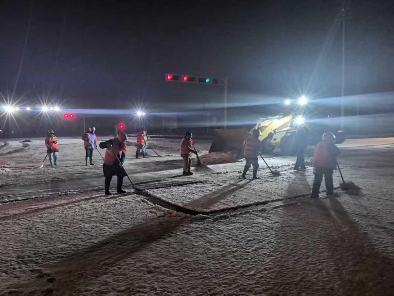 降雪发生后,开发区第一时间启动应急预案,统一指挥调度。各党支部快速行动,社区、国企及非公企业党组织协同联动,划分责任片区,重点保障主干道、养殖区域通道、党群服务中心周边及独居老人住所附近道路畅通。党员干部带头冲锋,于次日清晨携带工具赶赴现场,全面开展“保畅通、护生产、暖民心”行动。