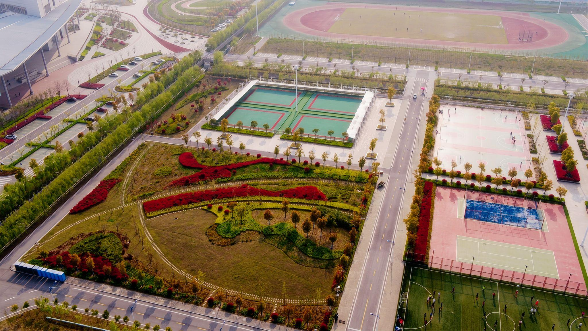 3.场内1片塑胶400米田径场、1片11人制足球场、3片笼式灯光篮球场、2套一代健身路径和1套二代健身路径。