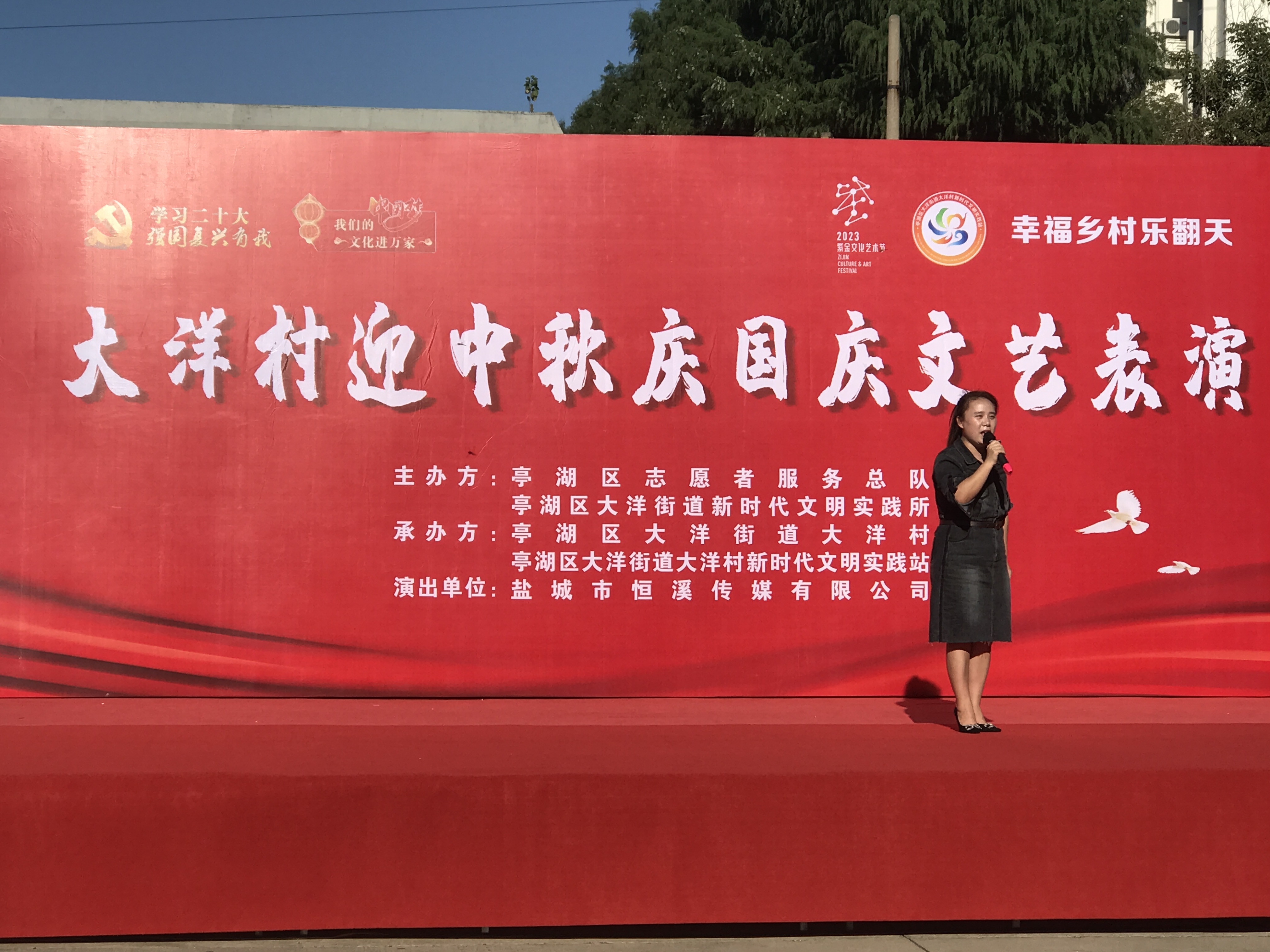 为营造文明喜庆、幸福和谐的节日氛围,展示居民健康阳光、积极向上的精神风貌,9月22日下午,亭湖区志愿服务总队、大洋街道新时代文明实践所、大洋村新时代文明实践站、盐城市恒溪传媒有限公司联合举办了“大洋村迎中秋·庆国庆”暨“幸福乡村乐翻天”文艺演出活动,精彩的演出引得观众不时爆出热烈的掌声。