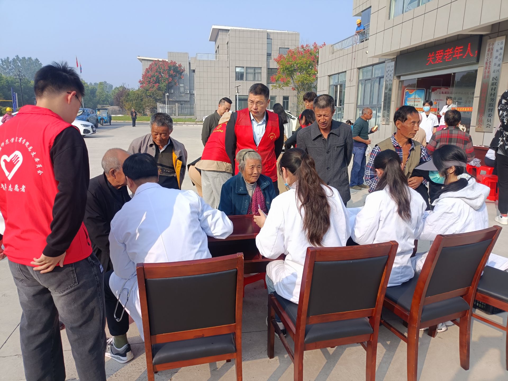 宝瓶湖街道民联村,街道团工委、社区卫生服务中心联合盐城师范学院商学院团委在村部开展了主题为“情满重阳 久久相伴”的敬老爱老慰问活动。活动中,志愿者为老年人带来了免费的健康体检,还通过健康知识讲座,为老人们讲解秋季养生、慢性病防治等方面的知识。