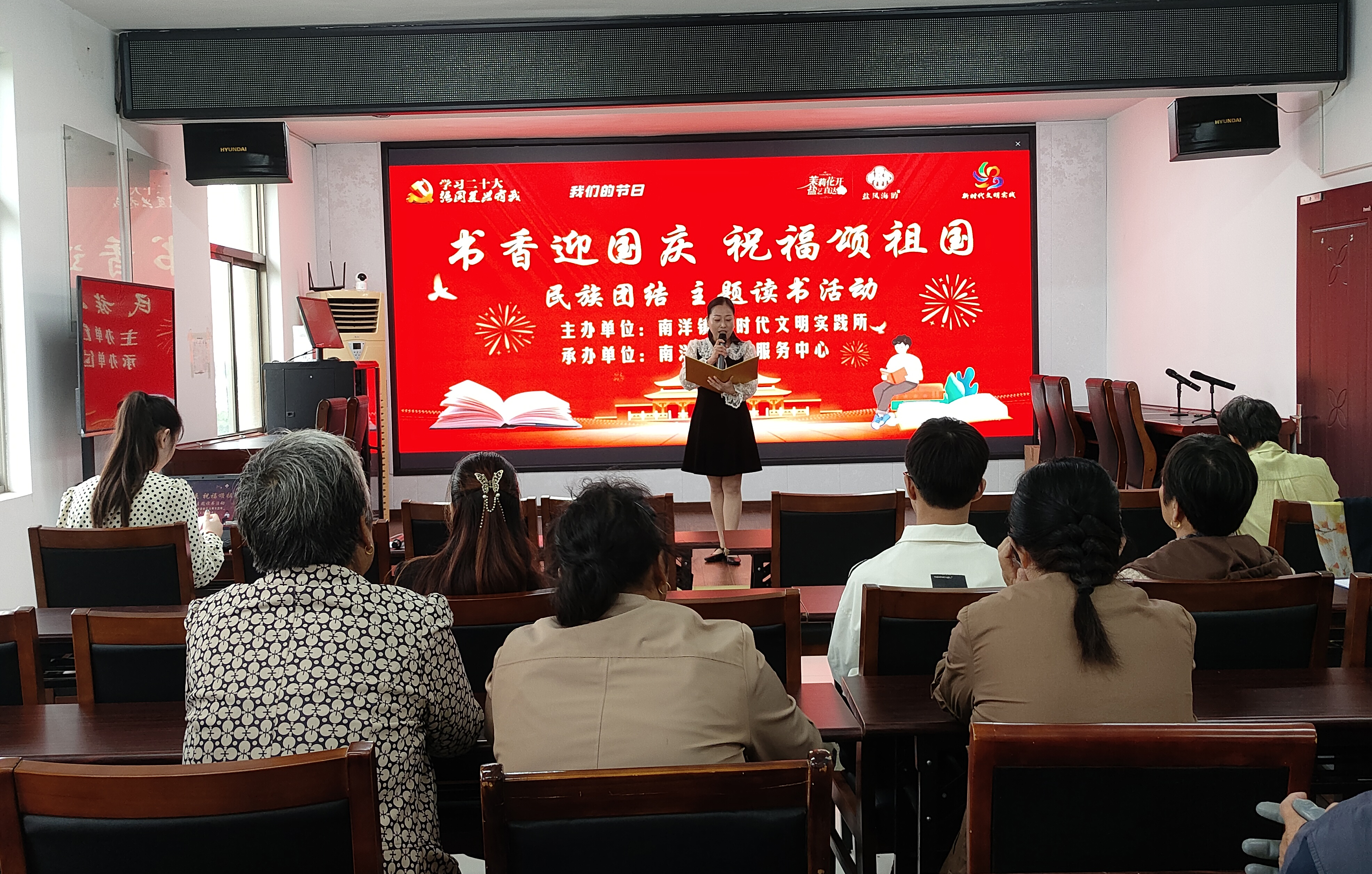 为弘扬爱国主义精神,铸牢中华民族共同体意识,传承红色文化基因,9月26日下午,由亭湖区南洋镇新时代文明实践所主办、南洋镇文化服务中心承办的“书香迎国庆祝福颂祖国”民族团结主题阅读活动在曰康村大会议室举行。村民齐聚一堂,以书香为媒,以爱国为题,共同度过了一个充满正能量与家国情怀的时光。