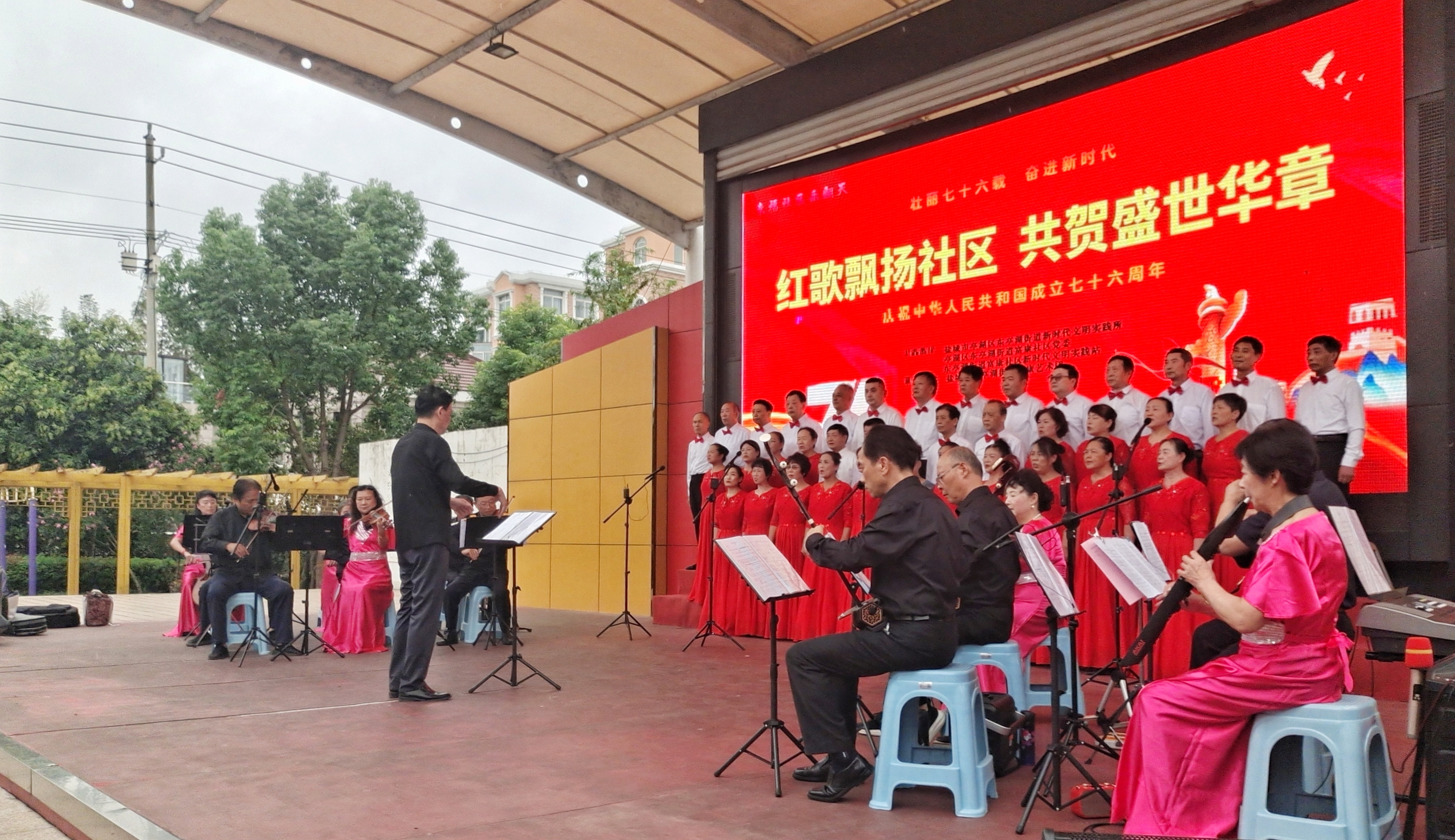 红歌联唱环节更是将现场气氛推向了沸点。《歌唱祖国》《我和我的祖国》等一首首经典红歌接连唱响,激昂的旋律在社区上空久久回荡。居民们挥舞着手中的小红旗,跟着节奏齐声合唱,脸上洋溢着自豪与喜悦。这不仅是一场音乐的盛宴,更是一次全民爱国情怀的集中释放。