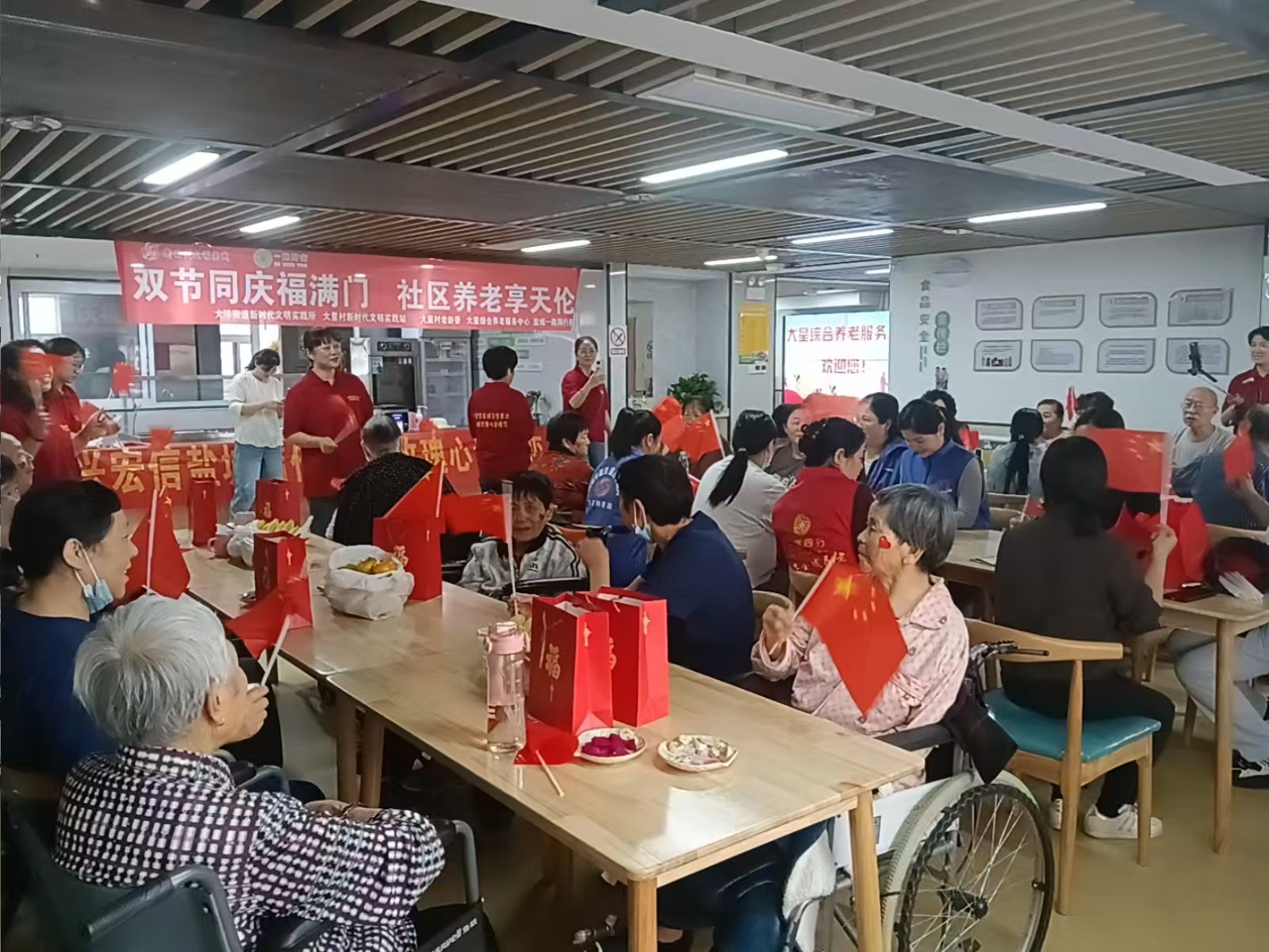 9月29日下午,亭湖区大洋街道大星村以中秋、国庆“双节”为契机,举办“双节同庆福满门社区养老享天伦”主题活动,为辖区老人送上节日关怀。