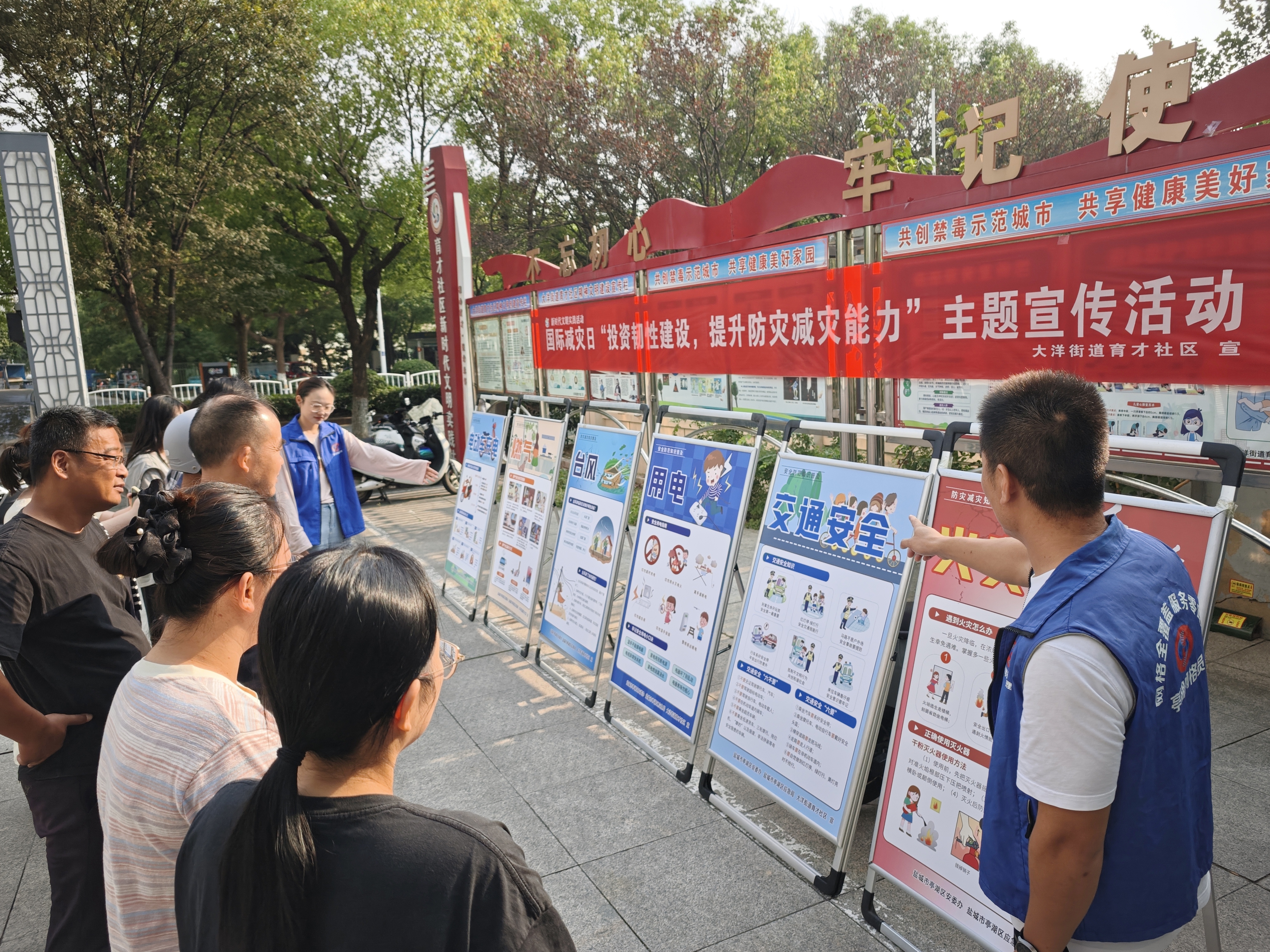 第36个国际减灾日来临之际,为进一步提高辖区居民的防灾减灾意识和应急避险能力,普及防灾减灾知识,10月11日,亭湖区大洋街道育才社区新时代文明实践站联合社区网格化管理中心,共同举办了“投资韧性建设,提升防灾减灾能力”主题宣传活动,将防灾减灾服务送到群众“家门口”,织密全民防灾“安全网”。