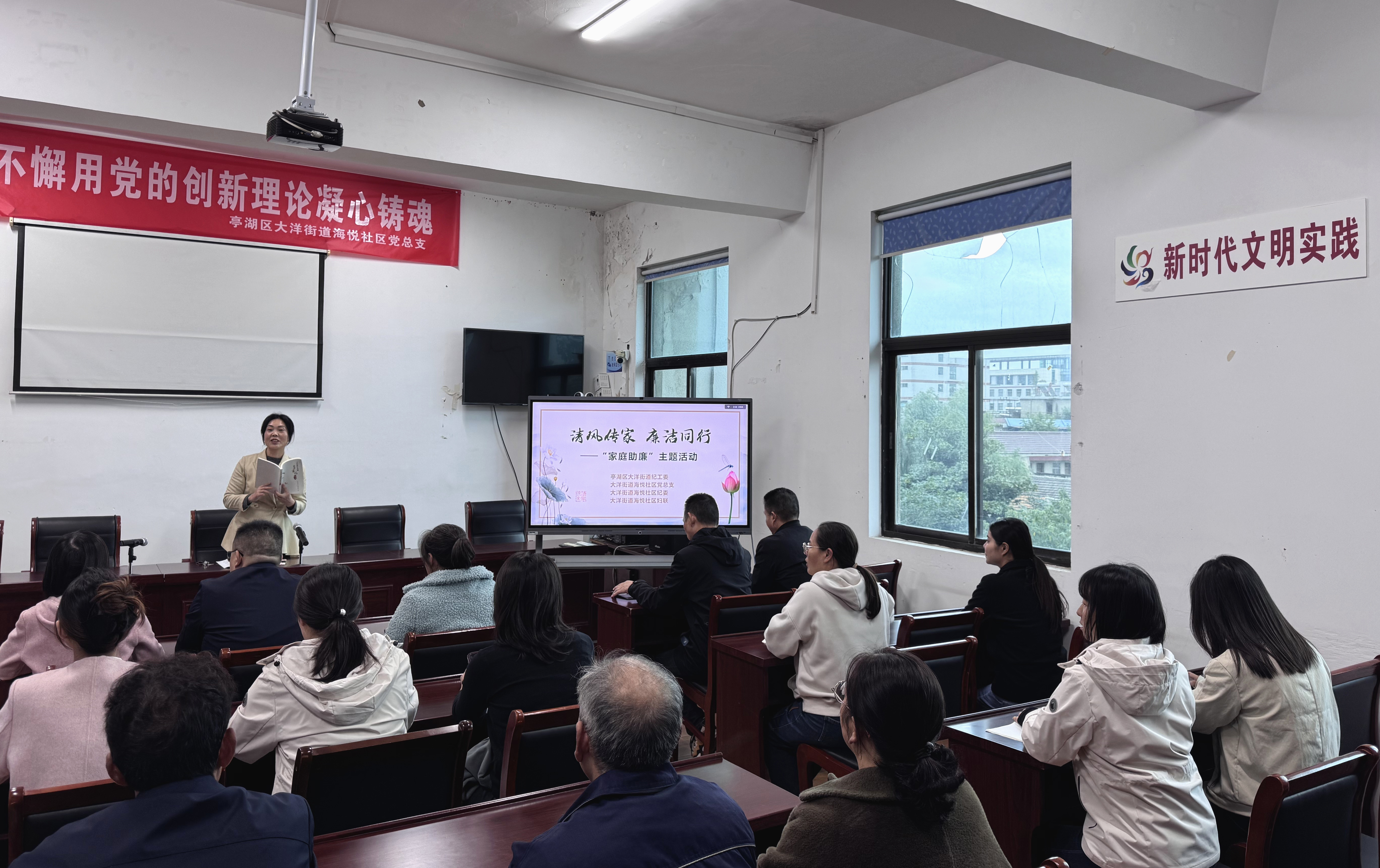 家风连着党风。为充分发挥廉洁文化“润物细无声”的教育功能,今年以来,大洋街道纪工委将家风建设与廉洁教育相结合,组织开展“亲情话廉”“书写红色家书”等家庭助廉活动,号召党员群众注重家庭、注重家教、注重家风,争做家风建设的参与者、践行者和引领者,有效推动清廉价值理念在基层落地生根。