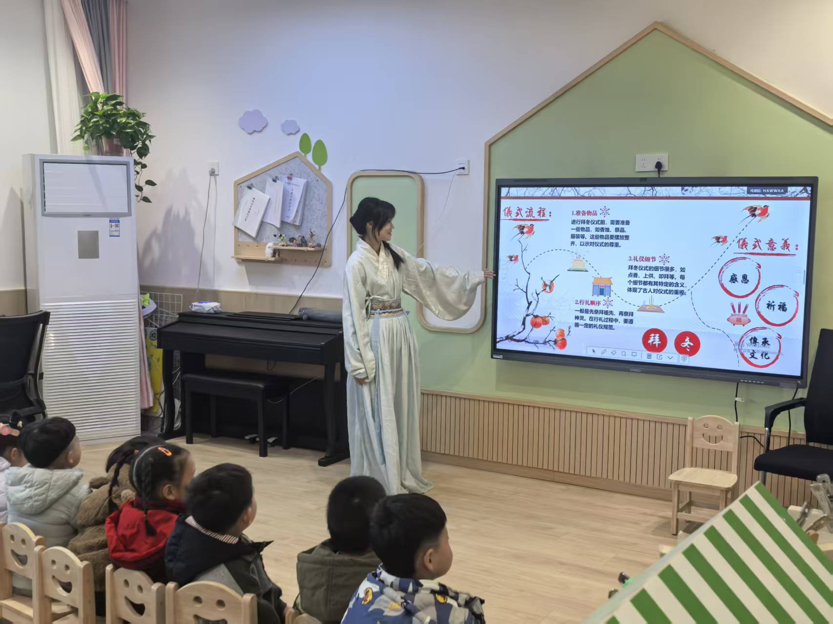 盐城师范学院志愿者身着特色汉服登场,以“节气小问答”为切入点,引导孩子们认识汉服形制之美,同步带领体验传统“拜冬”仪式——孩子们跟着志愿者轻整衣袂、学行礼仪,在沉浸式互动中点燃对节气文化的兴趣。