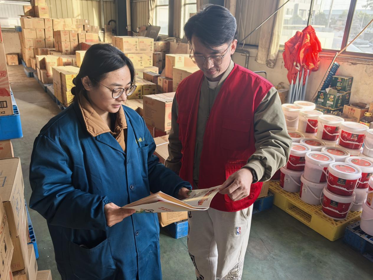 活动中,由网格员和志愿者组成的联合服务队深入企业车间、生产一线,聚焦消防设施、用电规范、设备操作等关键环节,对园区内10余家企业展开“地毯式”隐患排查。网格员充分发挥“人熟地熟情况熟”的优势,现场指导整改隐患3处,并建立动态管理台账。志愿者则化身“安全宣讲员”,通过发放宣传手册、安全常识问答等形式,向200余名一线工人普及安全生产常识,生动讲解违规操作的严重后果,切实增强员工的自我保护意识和应急处置能力。