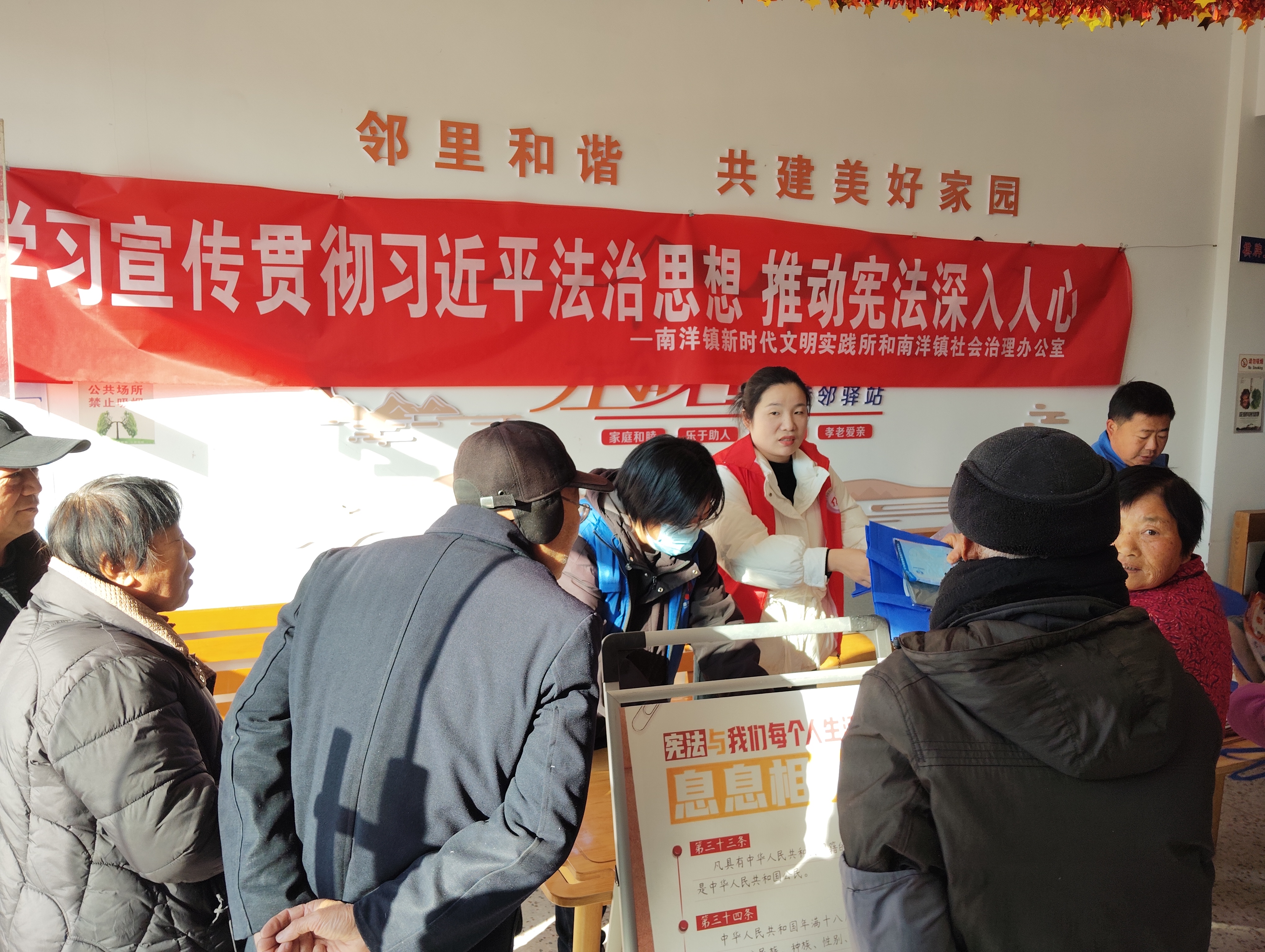 今年是全民普法40周年,12月4日是第十二个国家宪法日。为深入弘扬宪法精神,传播宪法理念,12月3日,亭湖区南洋镇新时代文明实践所与南洋镇社会治理办公室联合开展了以“学习宣传贯彻习近平法治思想,推动宪法深入人心”为主题的宣传活动。