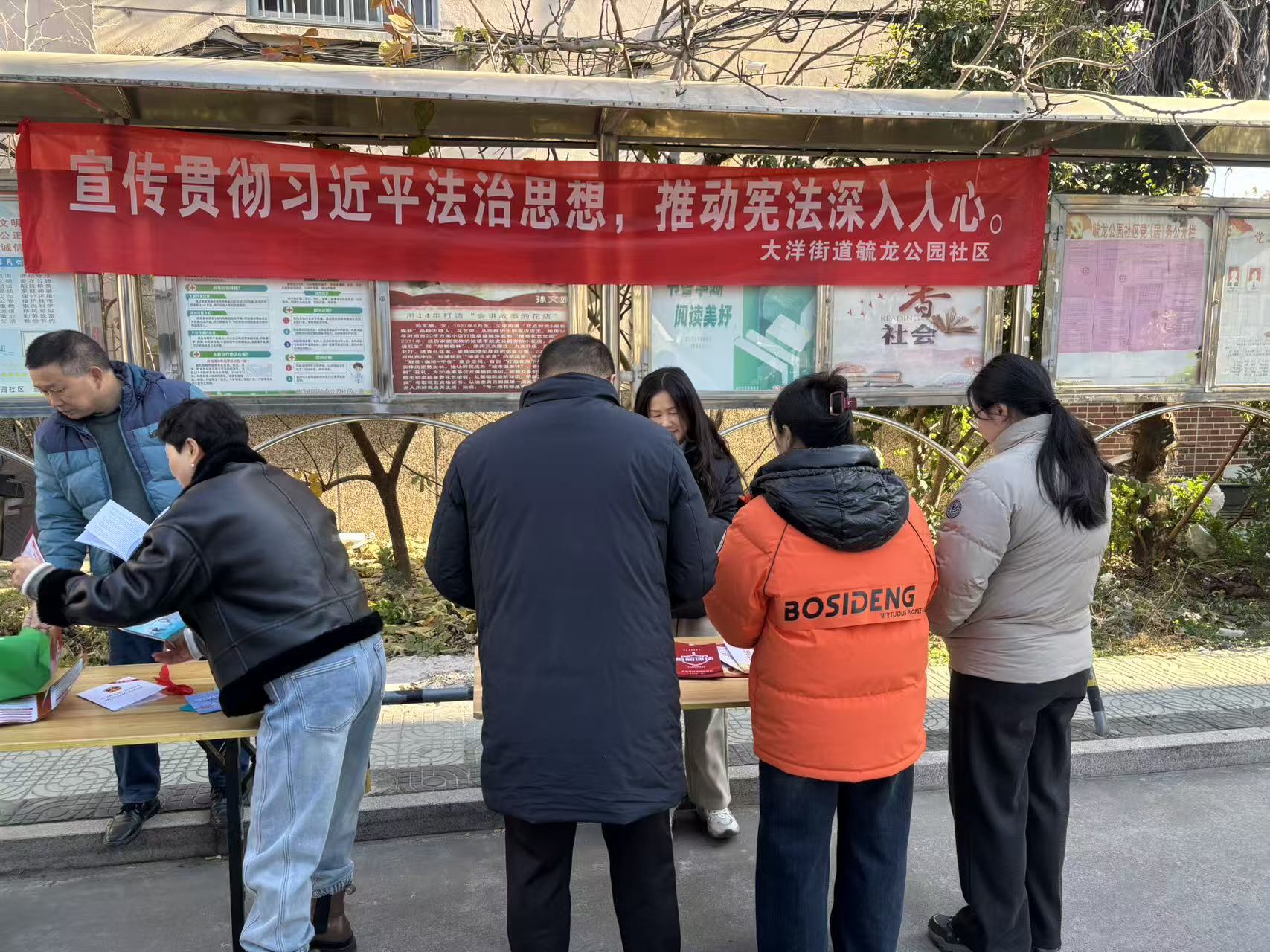 为进一步弘扬宪法精神,强化群众尊宪崇法意识,12月5日,亭湖区大洋街道毓龙公园社区新时代文明实践站携手社区妇联、网格化管理中心,开展了“学习贯彻习近平法治思想,推动宪法深入人心”主题宣传活动,将法律知识送到居民身边。