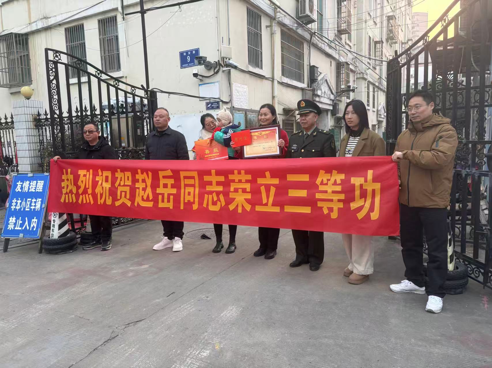 喜报传社区,荣光耀家门。1月15日,亭湖区大洋街道毓龙公园社区为荣立三等功的赵岳送上喜报与祝贺,军功章的背后是坚守与奉献,这份荣誉不仅属于个人,更是社区的骄傲。