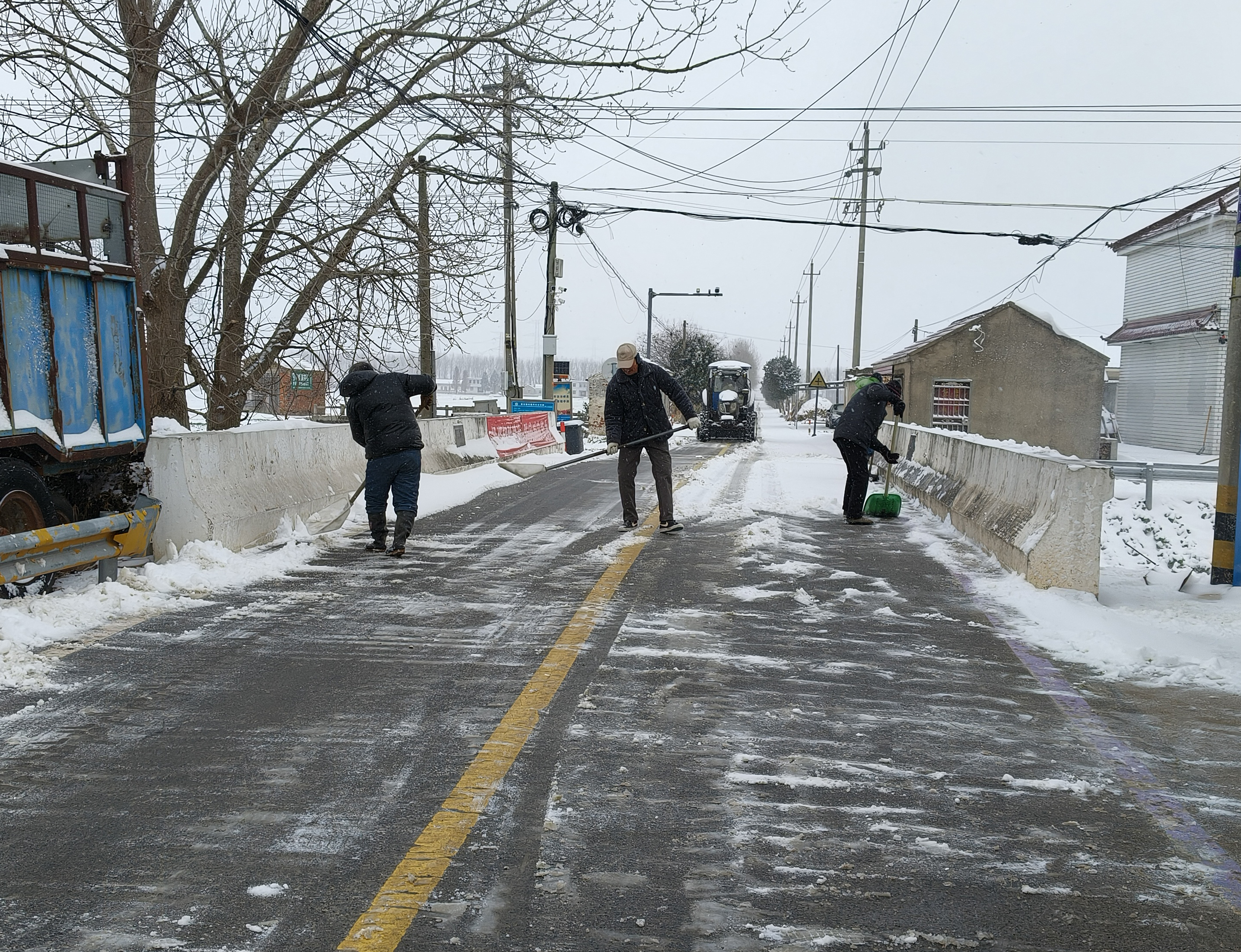 铁锹与地面的摩擦声此起彼伏,一个个忙碌的身影在雪地里来回穿梭,涌动着的热情仿佛驱散了严寒。大家分工协作,有的铲除积雪,有的撒上防滑物料,全力保障村民出行安全。虽然寒风刺骨,但每个人脸上都洋溢着温暖的笑容。