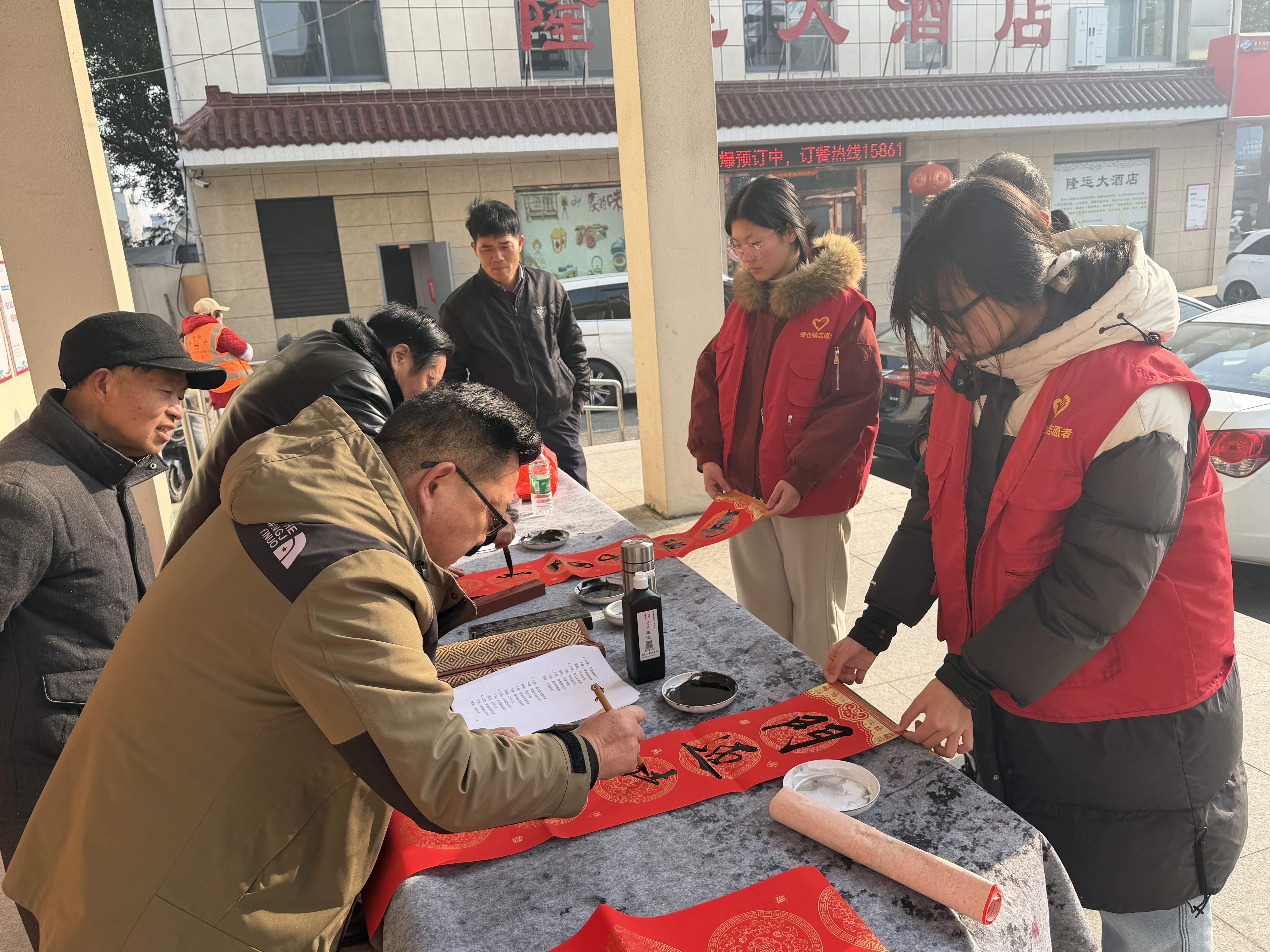 新春将至,年味渐浓。2月5日,亭湖区便仓镇新时代文明实践所、盐城市牡丹书画院、便仓镇老干部党支部、便仓社区新时代文明实践站在便仓镇大礼堂门口开展一场以“贺新春,送春联”为主题的文化惠民活动。活动邀请书法爱好者与居民齐聚一堂,现场书写春联和福字,将新春祝福化作一副副红火的春联,送到居民手中。