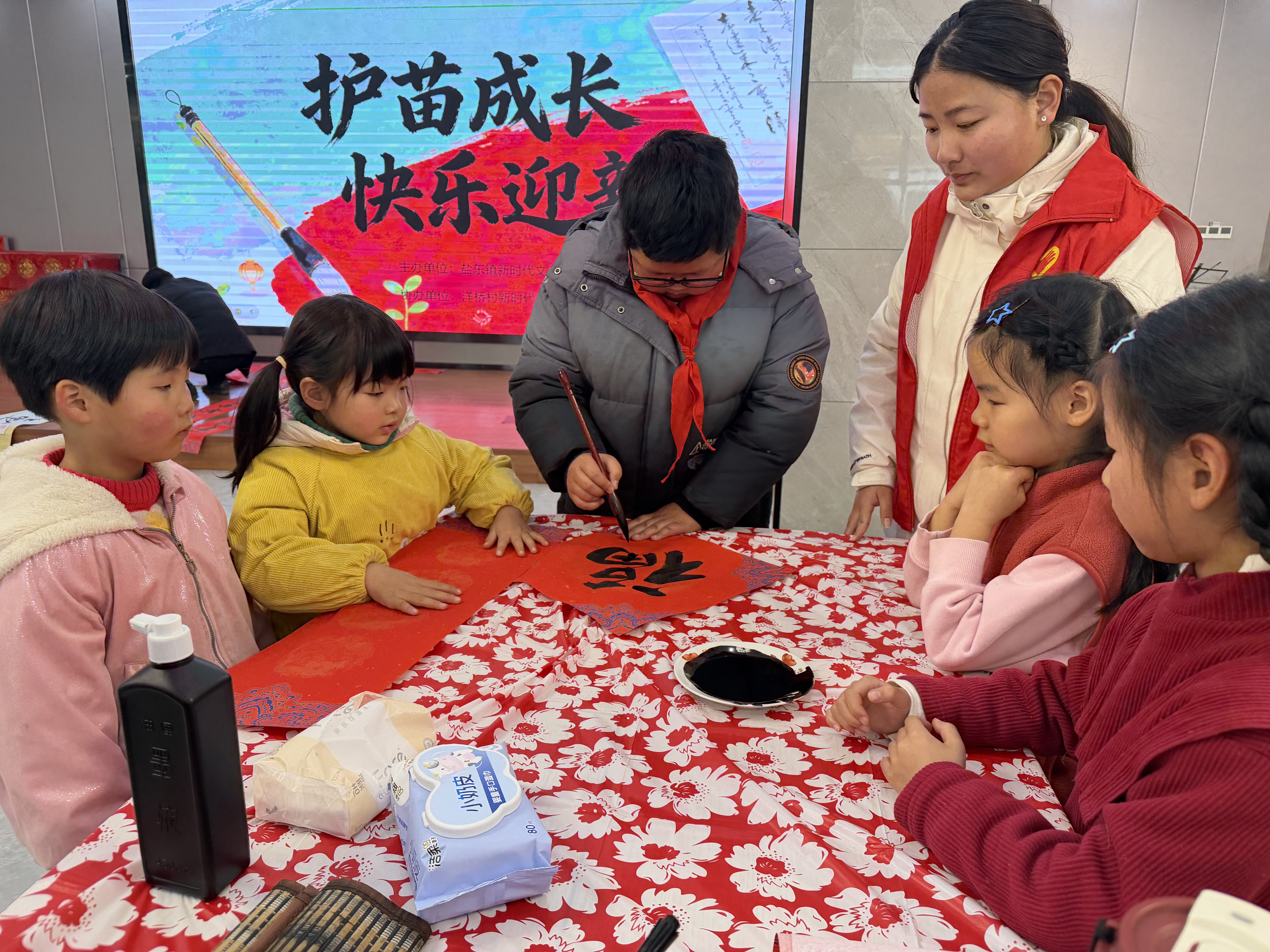 腊月渐浓,年味愈盛。为传承中华优秀传统文化,深化“扫黄打非·护苗”行动,营造欢乐祥和的新春氛围。2月5日上午,亭湖区盐东镇新时代文明实践所联合洋桥村新时代文明实践站,精心开展“护苗成长,快乐迎新”写春联活动,以笔墨传情,用祝福护航,让未成年人在书香年味中感受文化魅力,收获成长温暖。