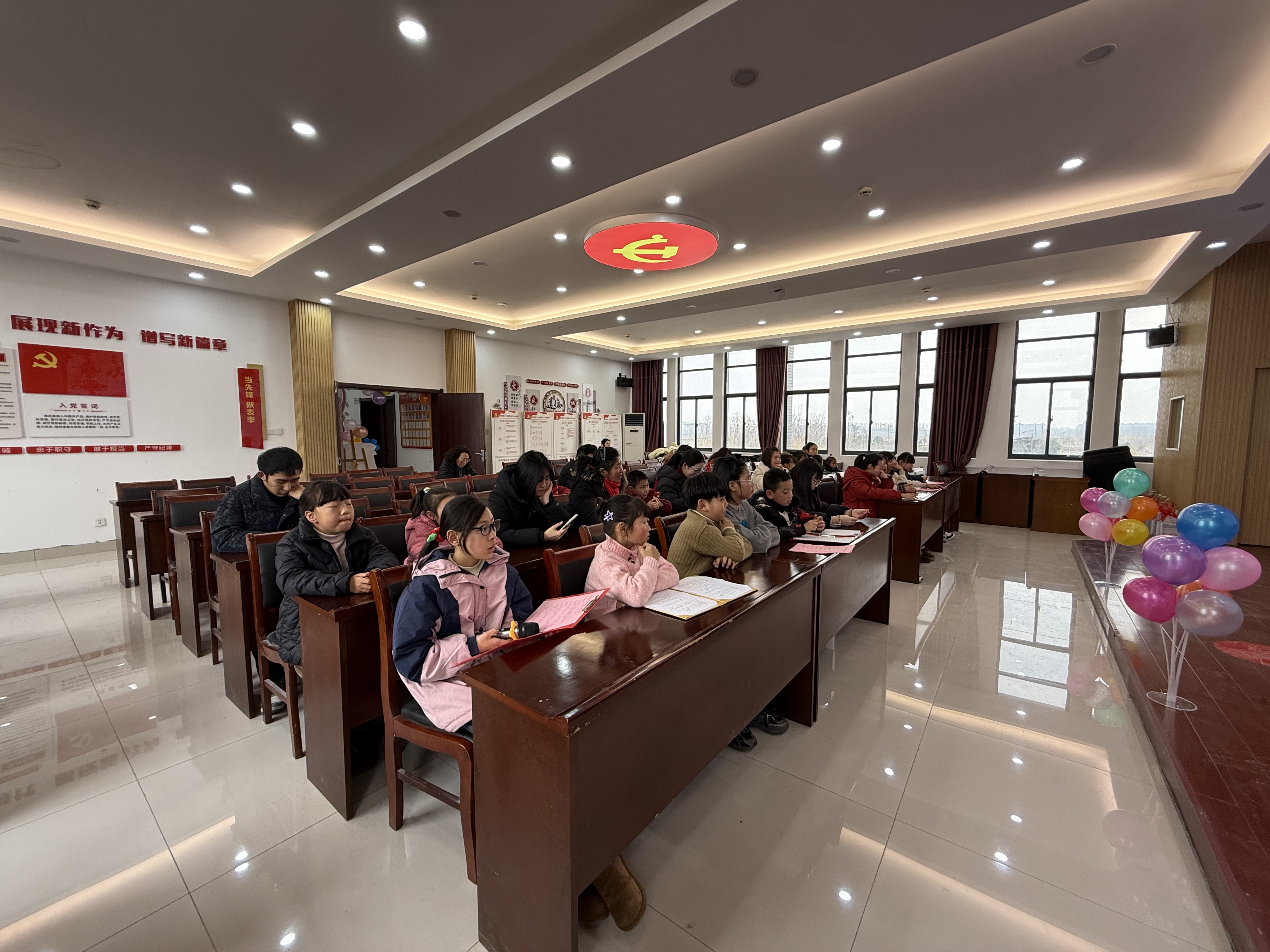 活动伊始,伴随着“冬日暖阳照,书香伴年到”的温馨开场,主持人为孩子们讲述了春节贴“福”字、发压岁钱、吃年夜饭等传统习俗背后有趣的故事和美好寓意,迅速点燃了现场气氛,引领孩子们走进了丰富多彩的年俗世界。