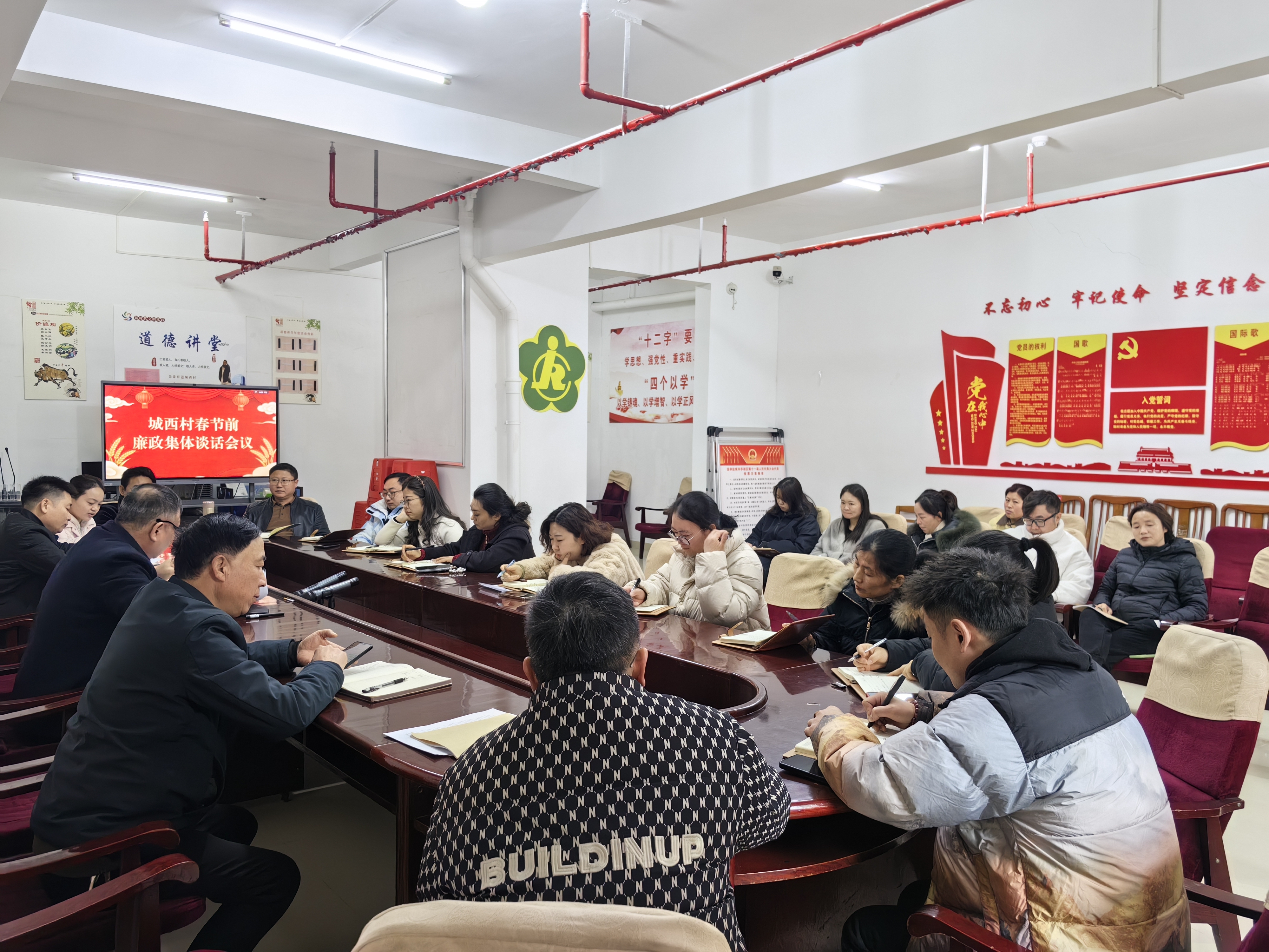 春节将至,年味渐浓。为深化全面从严治党,严明节日纪律,筑牢党员干部廉洁自律思想防线,营造风清气正的节日氛围,2月14日上午,亭湖区先锋街道城西村党委组织开展节前集体廉政谈话,全体村组工作人员参会。村党委围绕廉洁过节主题开展廉政提醒,并就节日期间工作提出四点明确要求。