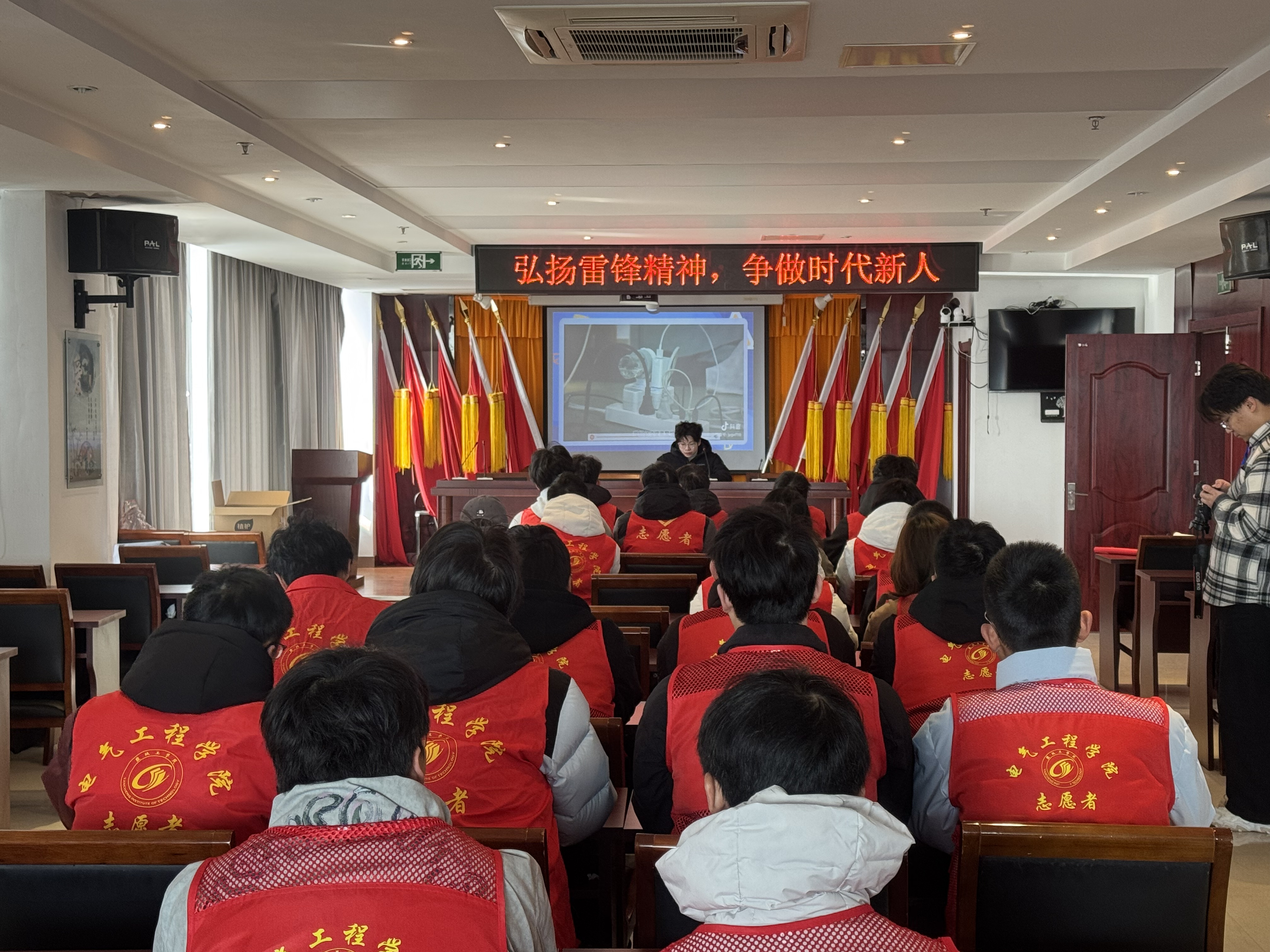 活动现场,志愿者整齐就座,观看雷锋事迹纪录片,重温雷锋同志无私奉献的感人故事。通过影像资料,大家深刻感受到雷锋精神穿越时空的力量,进一步理解了“奉献、友爱、互助、进步”的志愿精神内涵。随后号召全体志愿者以雷锋为榜样,将崇高的理想信念和道德品质融入日常学习和生活中,积极投身志愿服务,用实际行动诠释新时代青年的责任与担当。