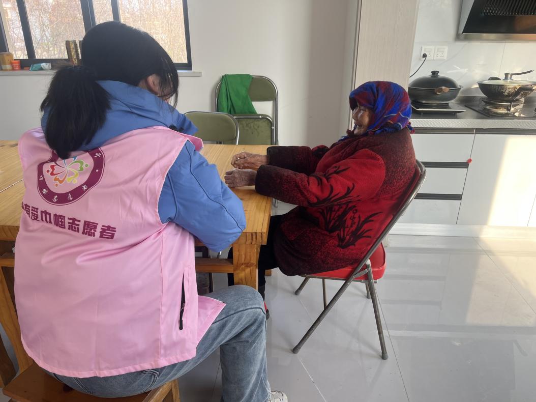 在老人家中,志愿者细致询问老人的身体状况和饮食起居,叮嘱老人注意保暖、合理膳食。志愿者主动帮忙打扫室内卫生、整理杂物,用贴心行动为老人排忧解难,让老人感受到社区大家庭的温暖。