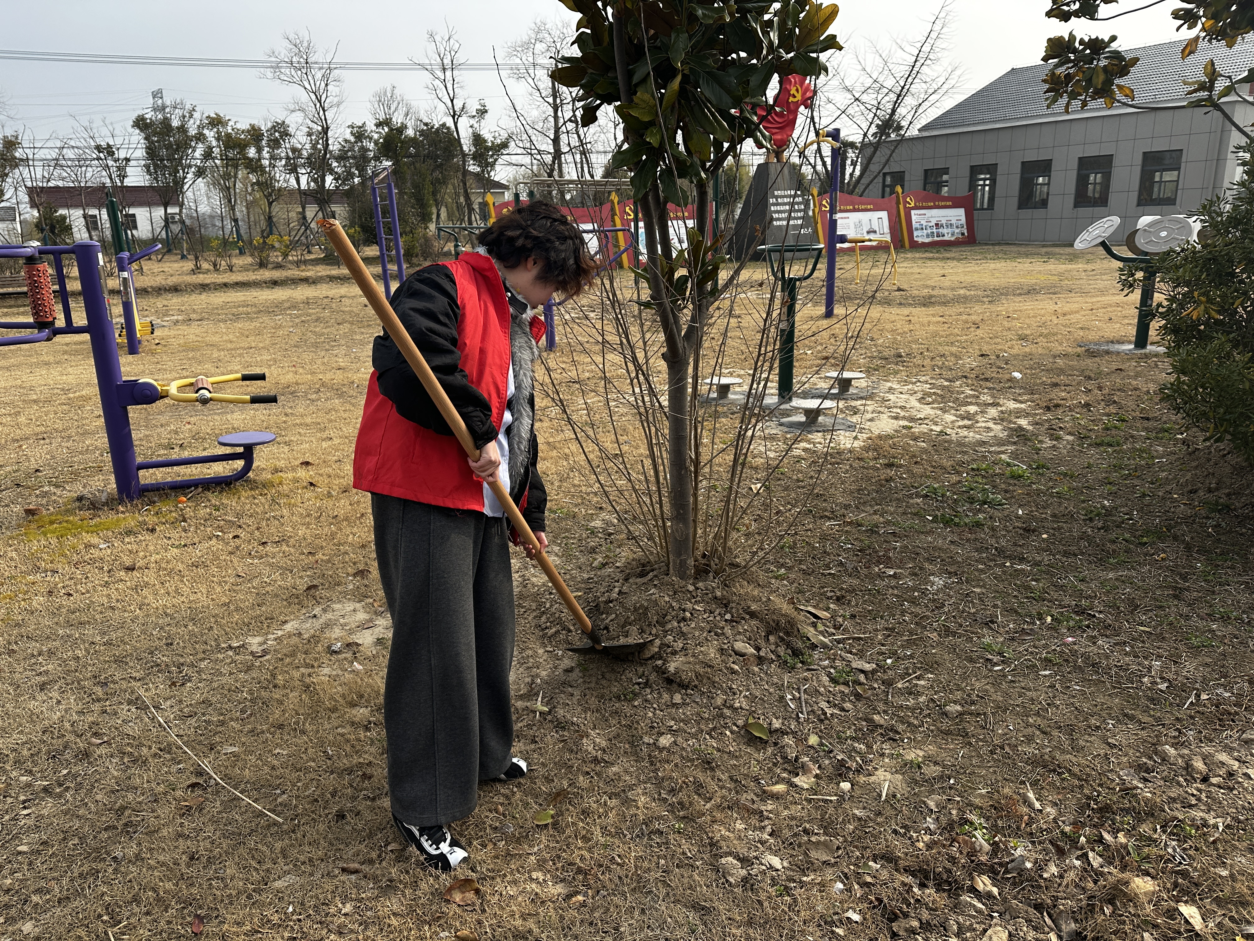 在植树护绿现场,大家分工协作,为树木涂刷石灰水,起到防虫杀菌、护绿养护作用,有效改善了村居环境,以实际行动打造整洁美观的村庄面貌。