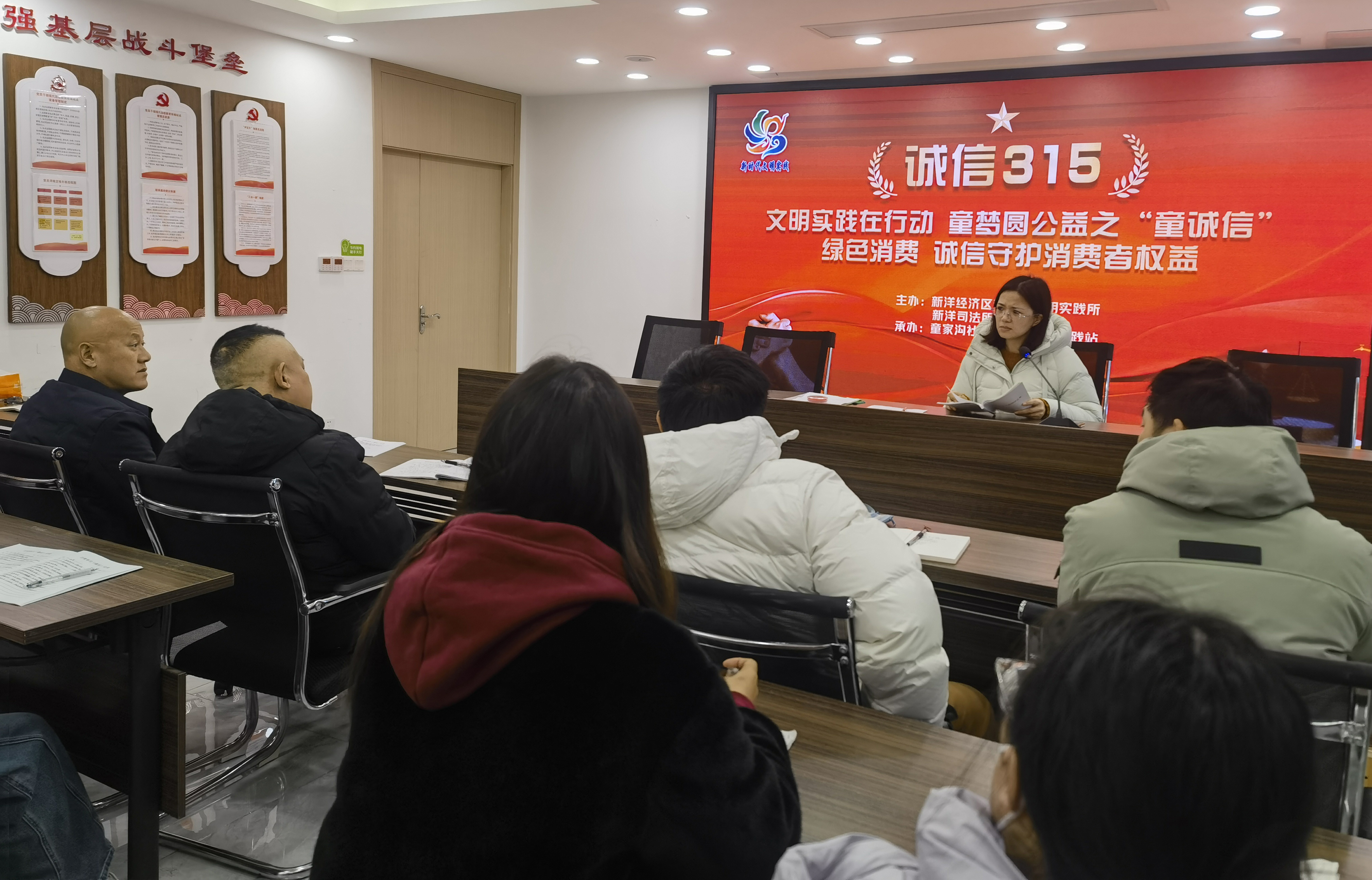 在第44个3.15国际消费者权益日来临之际,为切实加强辖区居民的消费权益保护意识,近日,由新洋经济区新时代文明实践所、司法所主办,童家沟社区新时代文明实践站承办的“文明实践在行动童梦园公益之童诚信绿色消费诚信守护消费者权益”系列活动在童家沟社区党员活动中心开展,以法治守护居民权益,用关爱守护幸福生活。