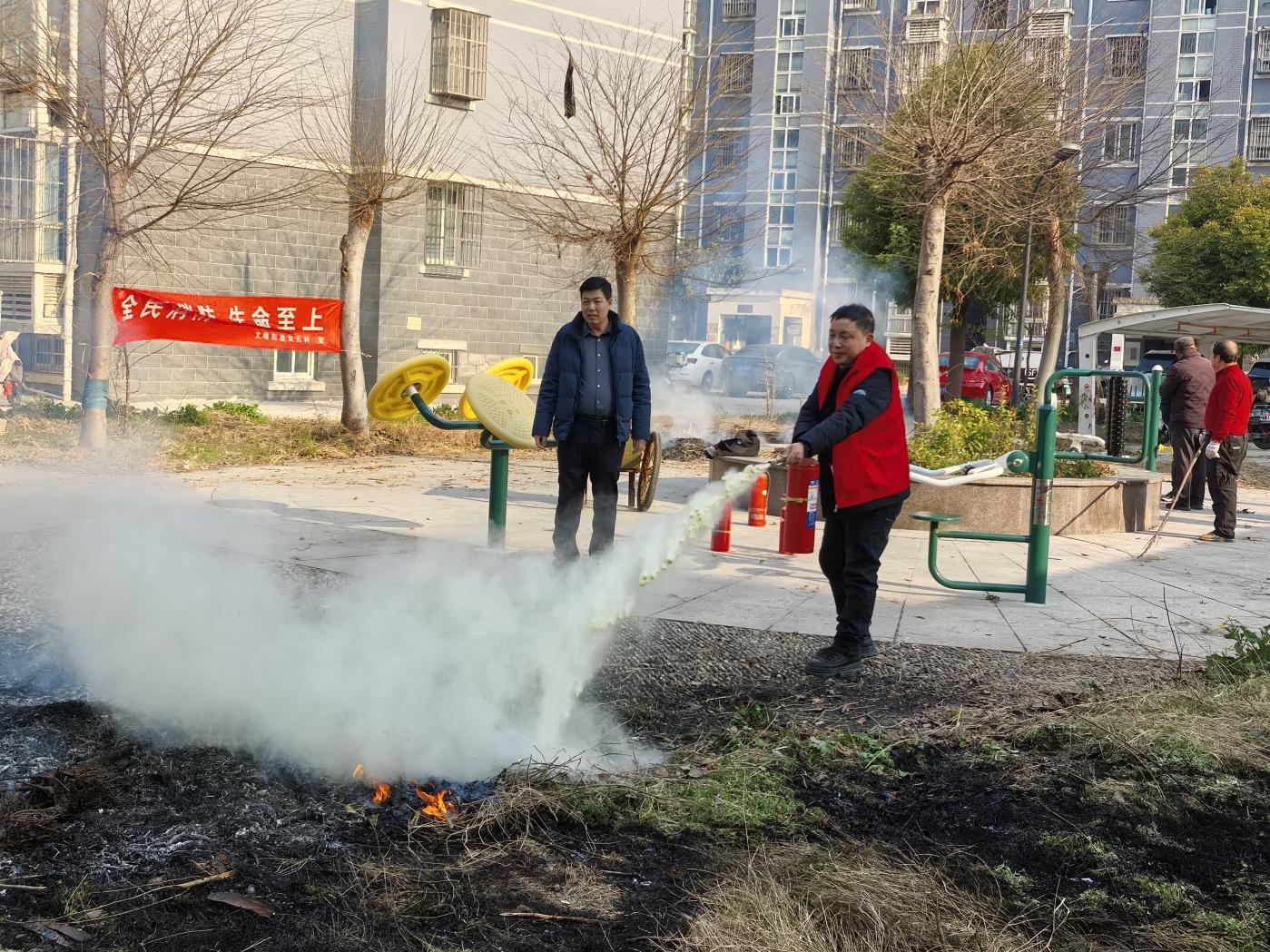 培训中,志愿者首先为大家讲解了灭火器的检查和使用方法,现场演示了如何正确使用灭火器,并着重强调了灭火器的操作要领和注意事项。随后,邀请村居民们轮番上阵使用灭火器对现场模拟火点进行灭火,按照灭火器使用的“提-拔-握-压四步操作法”,此时操练做到了在发生火警火灾时,村居民能用、敢用、会用灭火器扑灭初期火灾。此外,双元村工作人员走进居民区和商业网点,发放防火宣传资料,广泛宣传春季防火知识,营造了浓厚的安全氛围。村民们纷纷表示,通过此次宣传活动,对防火安全有了更深刻的认识,今后一定积极响应村居号召落实各项防火措施,共同拥抱一个生机盎然、平安美好的春天!