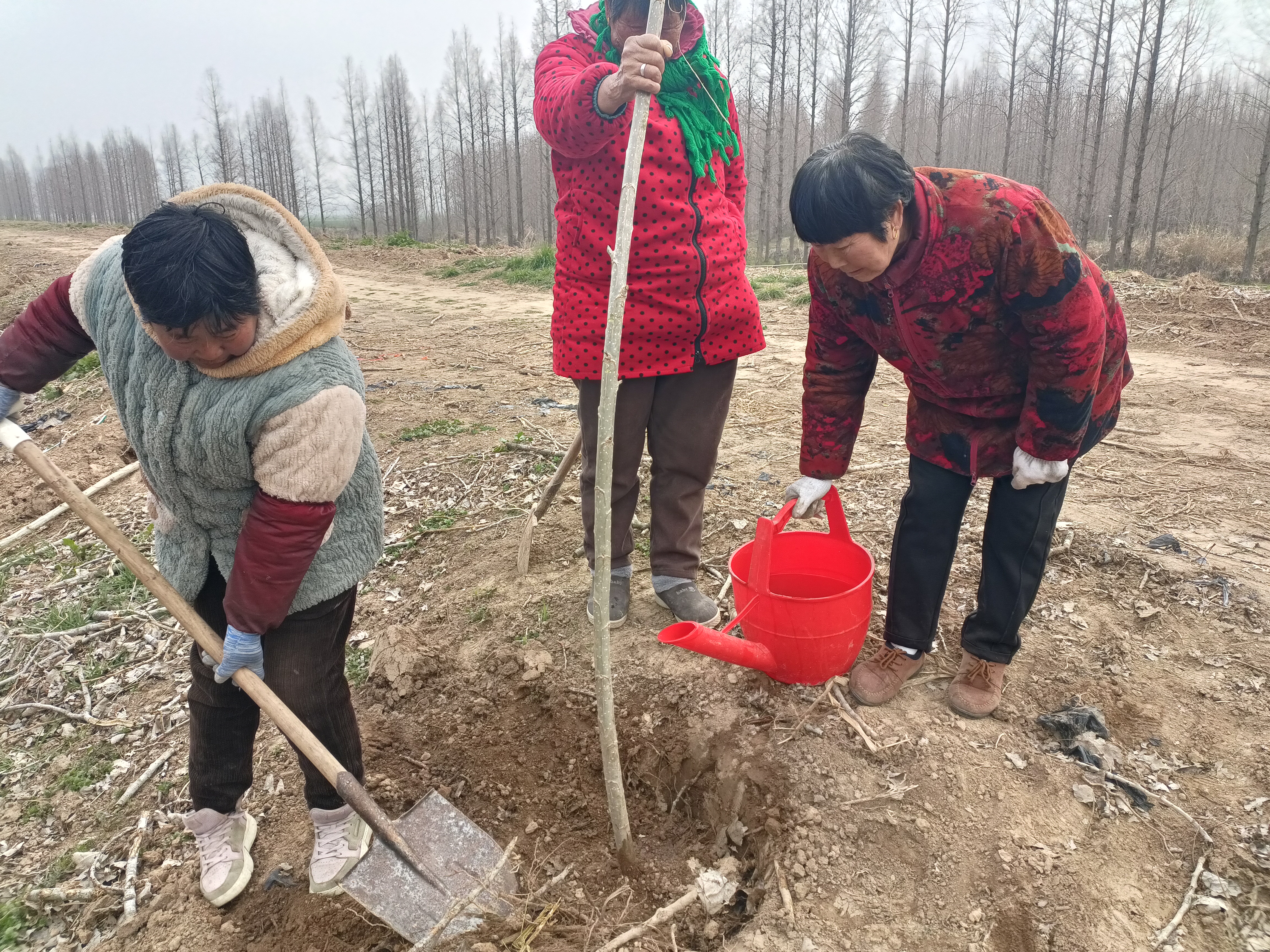 活动现场大家分工协作,配合默契。有的挥锹铲土,有的扶苗填坑,有的踏土夯苗,有的提桶浇水,每一个环节都做得认真细致。大家干劲十足,忙碌的身影构成了一道亮丽的风景线。经过一番辛勤劳动,一株株新栽种的树苗迎风挺立,在春光中展现出勃勃生机,为初春的大地增添了丝丝活力。