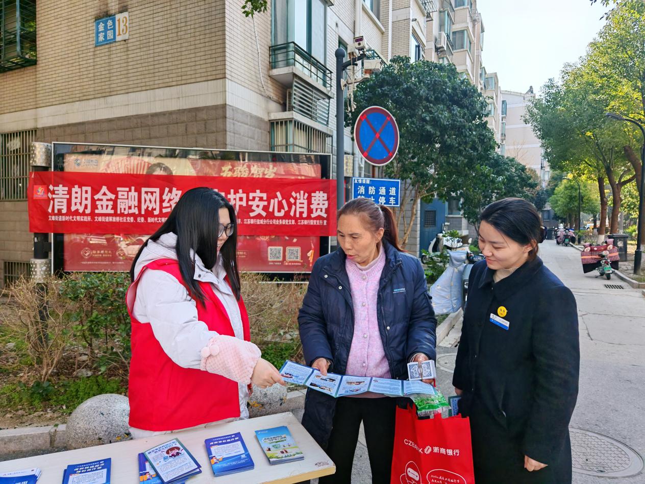 活动现场,银行工作人员与社区志愿者、网格员通过悬挂宣传横幅、发放宣传手册、现场讲解咨询等多种形式,向居民普及金融消费者八项基本权利、个人信息保护、防范电信网络诈骗、远离非法集资、理性投资理财、反假货币、等重点知识。针对老年群体、青少年等重点人群,工作人员用通俗易懂的语言,结合真实典型案例,详细讲解网络贷款诈骗、虚假理财、冒充客服退款等高发诈骗手段,提醒居民不轻信陌生信息、不随意透露银行卡密码、验证码,不向陌生账户转账,守好自己的“钱袋子”。