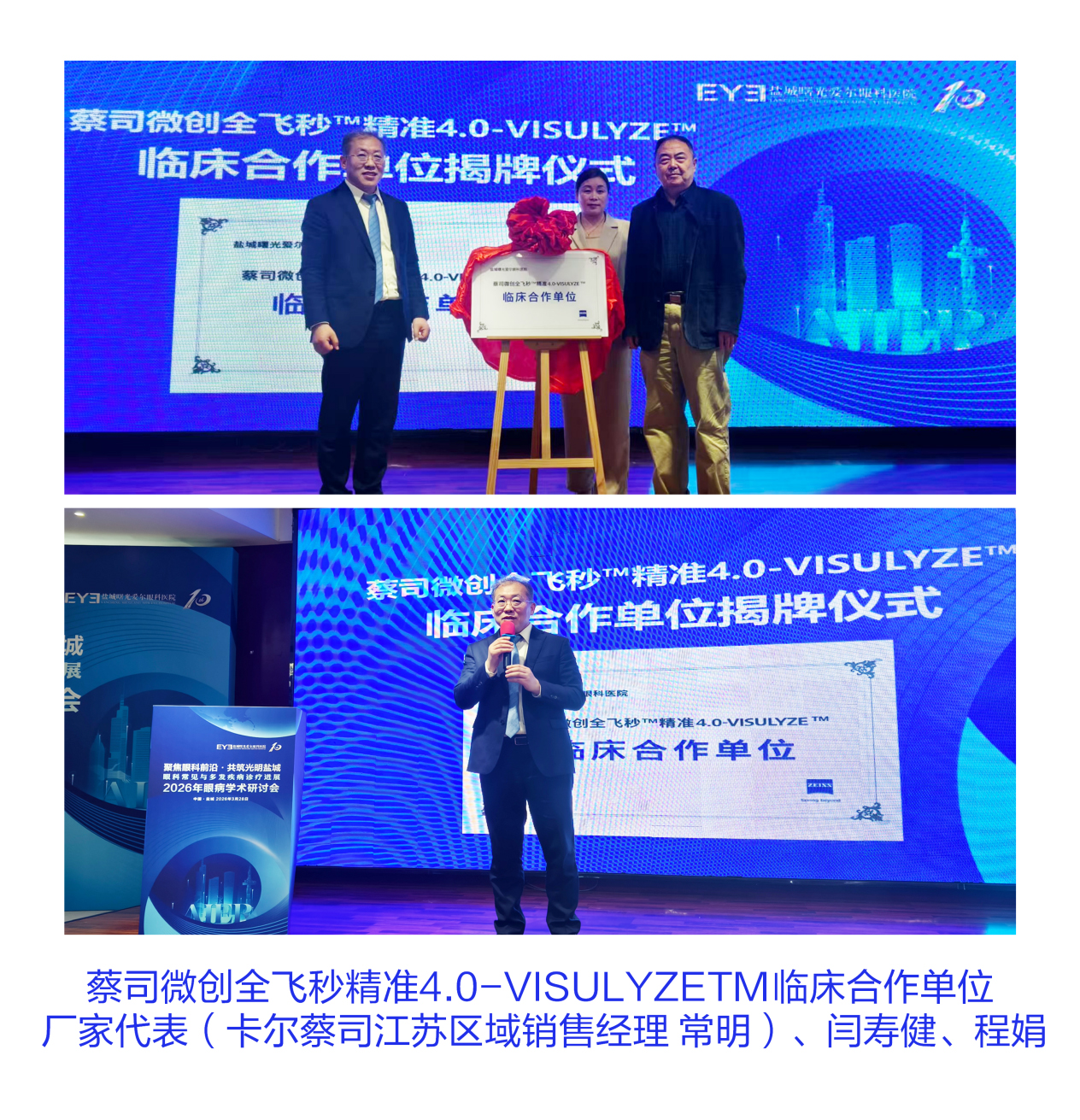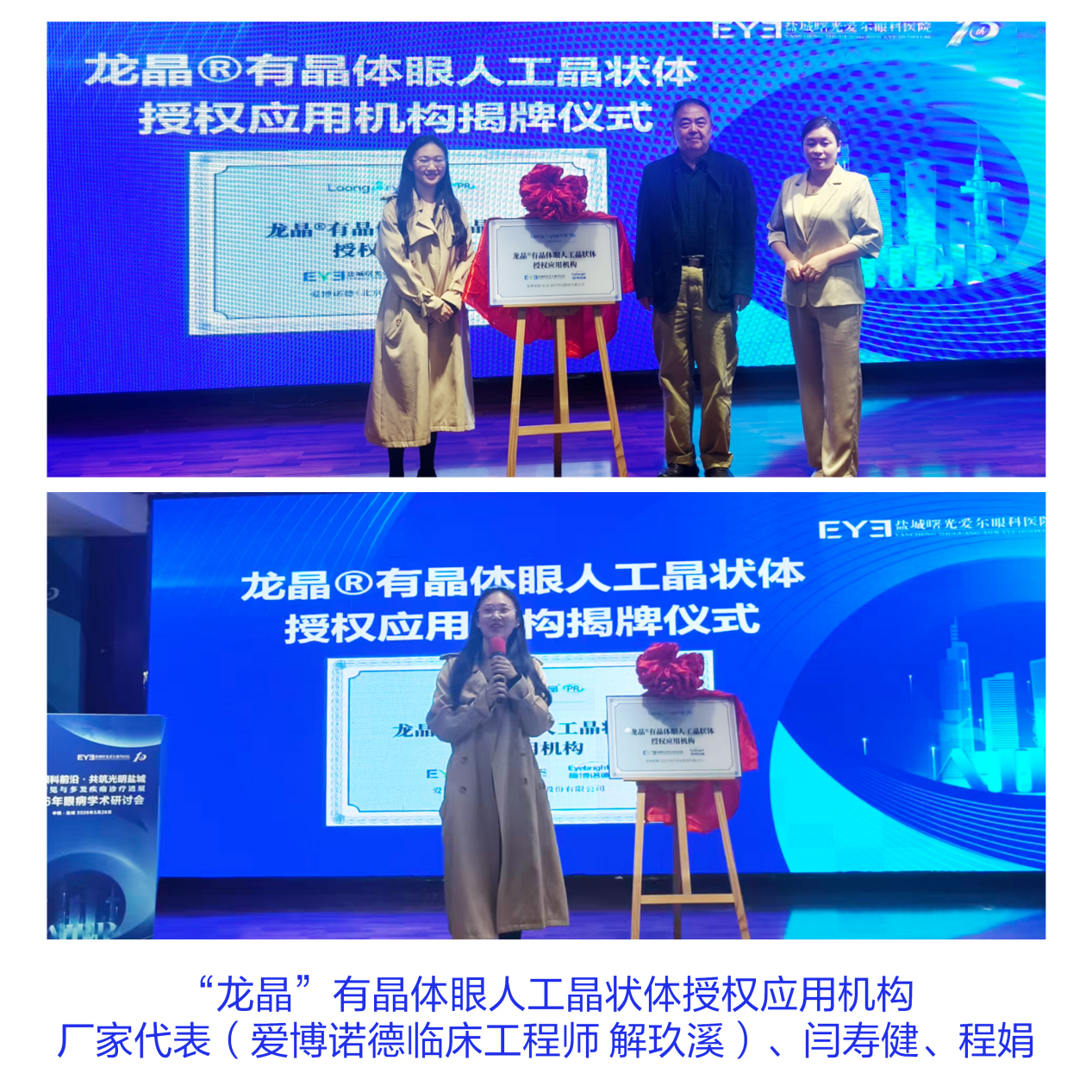 会议期间,还隆重举行了蔡司微创全飞秒精准4.0-VISULYZETM临床合作单位、“龙晶”有晶体眼人工晶状体授权应用机构两项授牌仪式,这一举措标志着盐城曙光爱尔眼科医院在屈光手术领域的设备配置与技术水平迈上新台阶,为区域近视矫正诊疗提供了更优质的技术支撑。