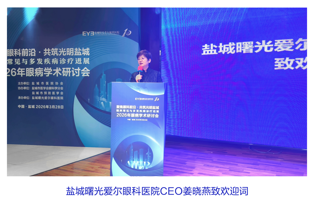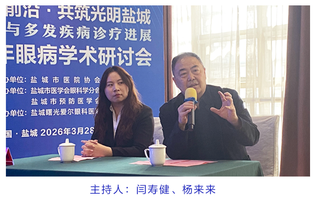 3月28日下午,由盐城市医院协会主办,盐城市医学会眼科学分会、盐城市预防医学会协办,盐城曙光爱尔眼科医院承办的“2026年眼病学术研讨会”,在盐城师范学院师院宾馆隆重召开。本次研讨会立足盐城、辐射苏北、联动全省,汇聚20余位眼科领域权威专家,着力搭建高水平全眼科学术交流平台,助力区域眼科诊疗水平实现高质量提升。