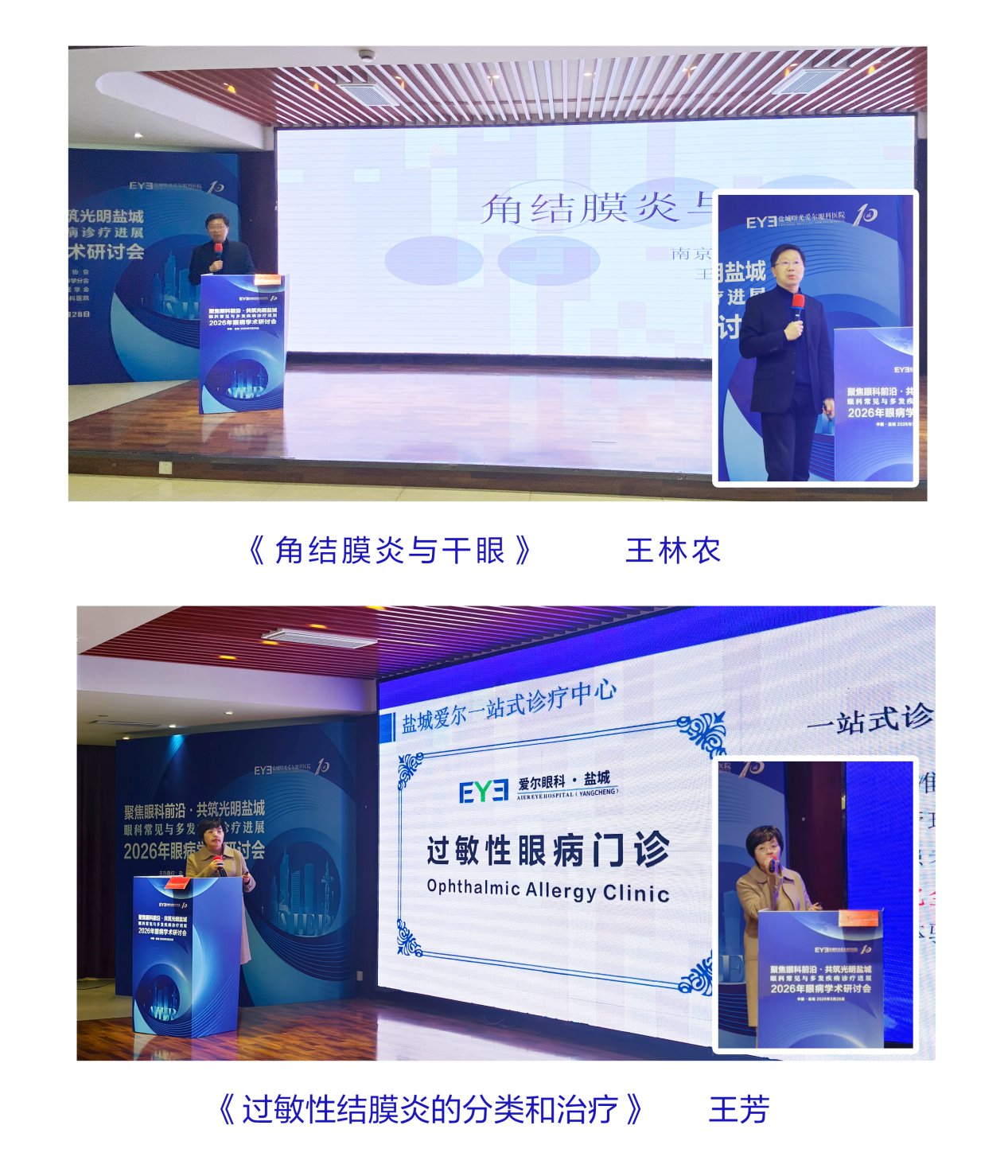 角膜板块方面,南京爱尔眼科医院院长王林农带来《角结膜炎与干眼》专题分享,系统梳理了常见眼表疾病的发病机制与规范化诊疗策略;盐城曙光爱尔眼科医院角结膜科主任王芳聚焦《过敏性结膜炎的分类和治疗》,为临床开展精准诊疗提供了新思路、新方法。