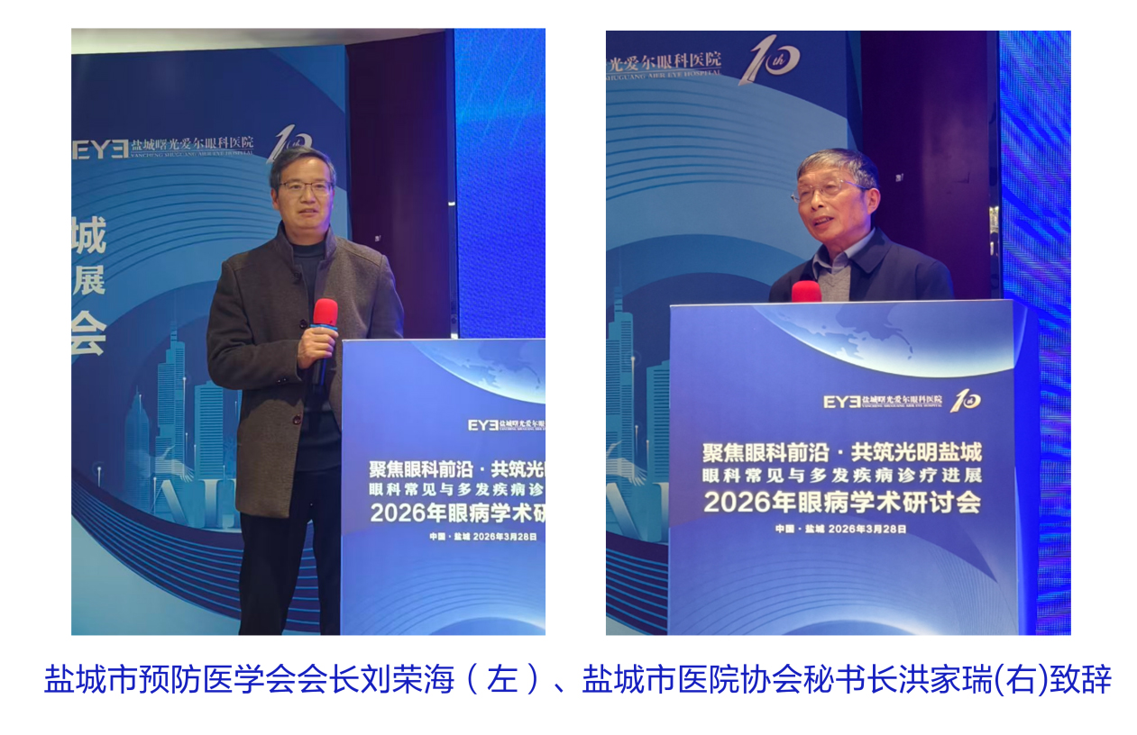 盐城市预防医学会会长刘荣海、盐城市医院协会秘书长洪家瑞分别致辞,对本次研讨会的顺利召开表示热烈祝贺,并就未来区域眼病防治工作的开展提出了殷切期望。