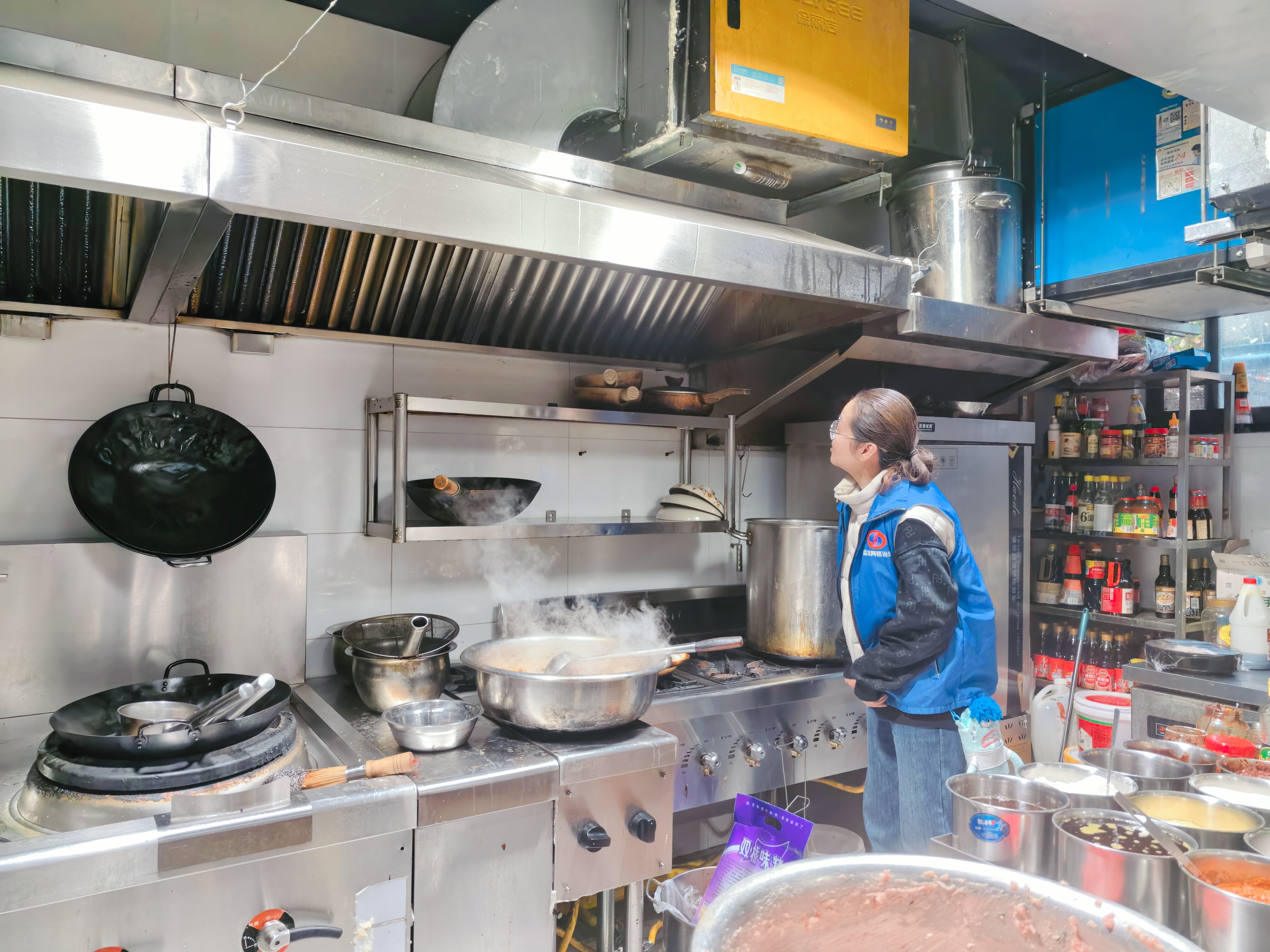 网格员、安全员聚焦消防关键环节,重点排查沿街餐饮商户、经营性场所的消防设施配备是否完好有效、疏散通道是否畅通、电器线路是否私拉乱接、油烟净化设备及燃气使用是否规范等问题,对发现的消防隐患现场指出,要求商户立即整改,明确整改时限与责任人,跟踪闭环管理。同时,巡查人员向商户和居民普及消防应急知识、燃气使用安全及环保规范,提醒大家增强安全防范意识。