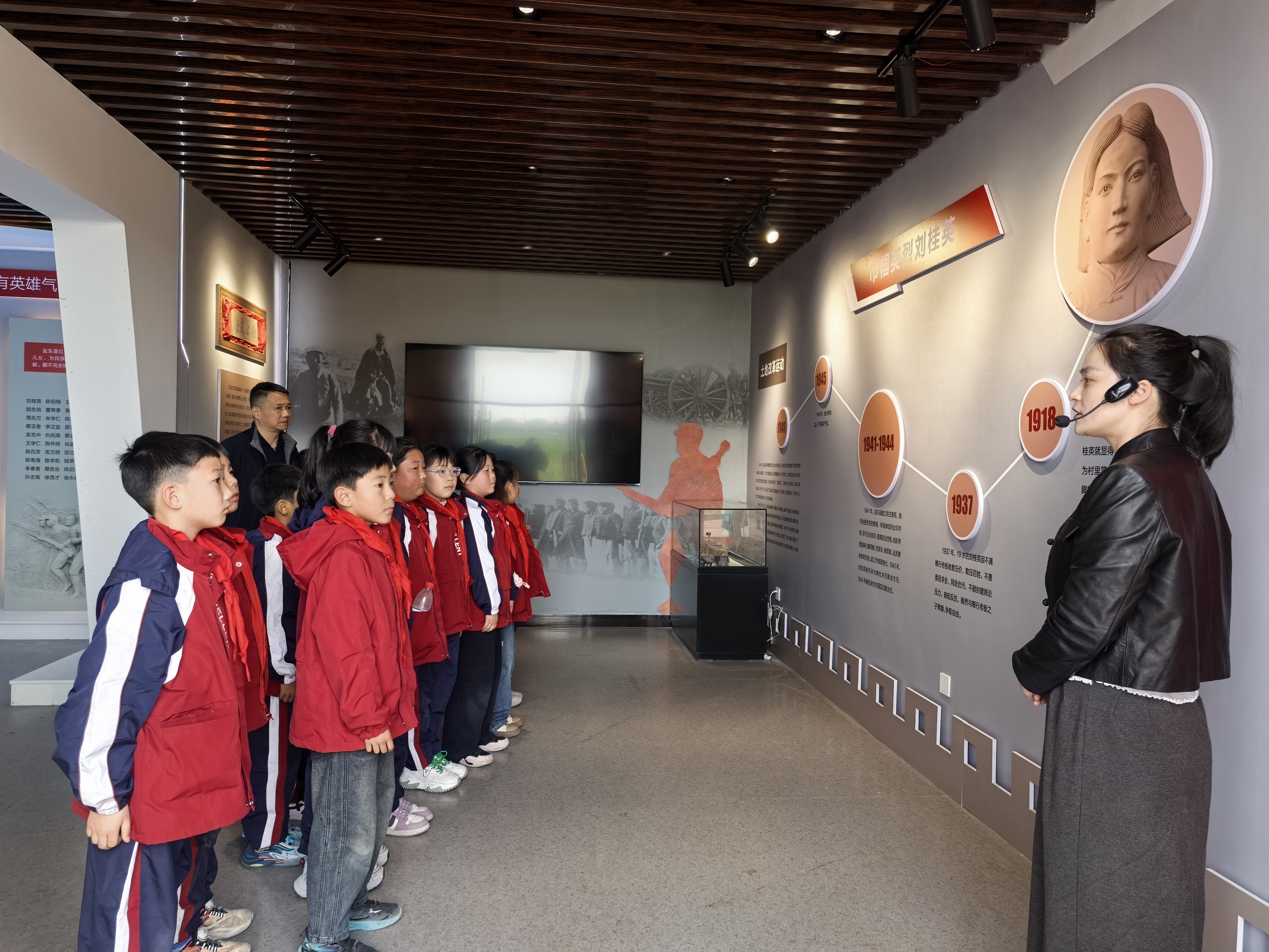 据悉,本次活动共组织丰富小学23名师生参与。活动期间,师生们驱车前往桂英村烈士陵园,认真聆听讲解员刘惟娣深情讲述刘桂英烈士宁死不屈、忠诚于党的英雄事迹,在聆听中感悟革命先辈的坚定信仰与崇高气节。